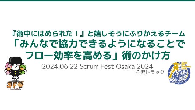 『術中にはめられた!』と嬉しそうにふりかえるチーム 「みんなで協力できるようになることで フロー効率を高める」術のかけ方 2024.06.22 Scrum Fest Osaka 2024 金沢トラック