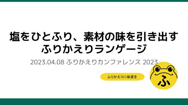 塩をひとふり、素材の味を引き出す ふりかえりランゲージ 2023.04.08 ふりかえりカンファレンス 2023 ふりかえりに味変を