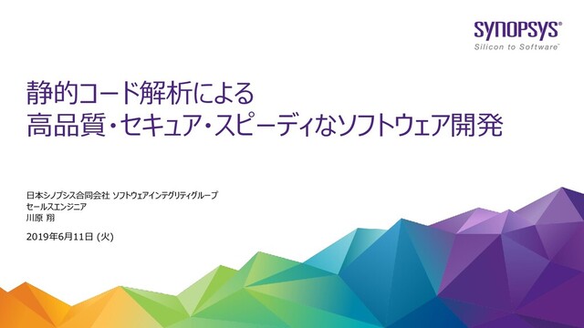 x 0.76(*不具合密度)/1,000 = 11,400件 *平均的な商用ソフトウェアの不具合密度を適用 • 想定される修正件数 : 11,400(行) x 0.9(誤検知率) x 0.5(要修正対応バグ) = 5,130件 • 上記より、約448人月の工数削減が期待できます。 • 開発者費用単価:6,300円/時 X 8時間 X 20日=1,008,000円/人月 • 448人月× 1,008,000円/人月= 451,584,000円 の費用対効果を得ることが可能 Coverity 導入による費用対効果 Confidential 不具合修正数 5,130件 コベリティを使用せずに修正する場合の工数 16 人時間/件 コベリティを導入し、修正する場合の工数 2 人時間/件 コベリティ導入前 5,130(件)x 16(人時間) = 82,080人時間 (約513人月) コベリティ導入後 5,130(件)x 2(人時間)= 10,260人時間(約64人月) 1日8時間 1ヶ月を20日として換算