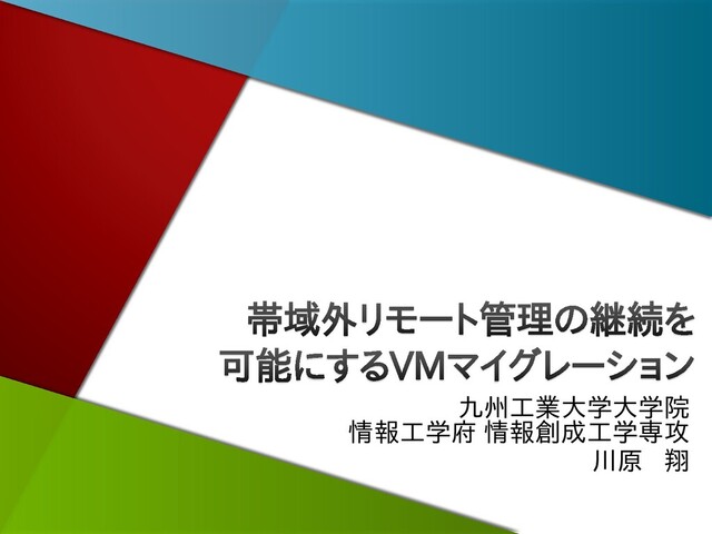IaaS 型クラウドにおいて,ユーザは提供された仮想マシン(ユーザ VM)をリモート管理する.ユーザ VM を管理する権限を持つ VM(管理 VM)を経由する帯域外リモート管理を行うことで,ユーザ VMの障害発生時でも管理が可能となる.しかし,ユーザ VM を別のホストにマイグレーションすると,管理VM がユーザ VM にアクセスできなくなり,リモート接続が切断されてしまう.さらに,処理中の入力情報も失われる可能性がある.