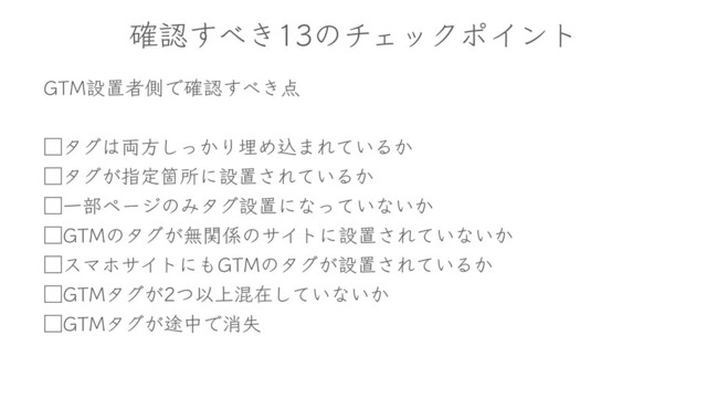 ֬ೝ͖͢ͷνΣοΫϙΠϯτ (5.ઃஔऀଆͰ֬ೝ͖͢ ˘λά྆ํ͔ͬ͠ΓຒΊࠐ·Ε͍ͯΔ͔ ˘λά͕ࢦఆՕॴʹઃஔ͞Ε͍ͯΔ͔ ˘Ұ෦ϖʔδͷΈλάઃஔʹͳ͍ͬͯͳ͍͔ ˘(5.ͷλά͕ແؔͷαΠτʹઃஔ͞Ε͍ͯͳ͍͔ ˘εϚϗαΠτʹ(5.ͷλά͕ઃஔ͞Ε͍ͯΔ͔ ˘(5.λά͕ͭҎ্ࠞࡏ͍ͯ͠ͳ͍͔ ˘(5.λά్͕தͰফࣦ