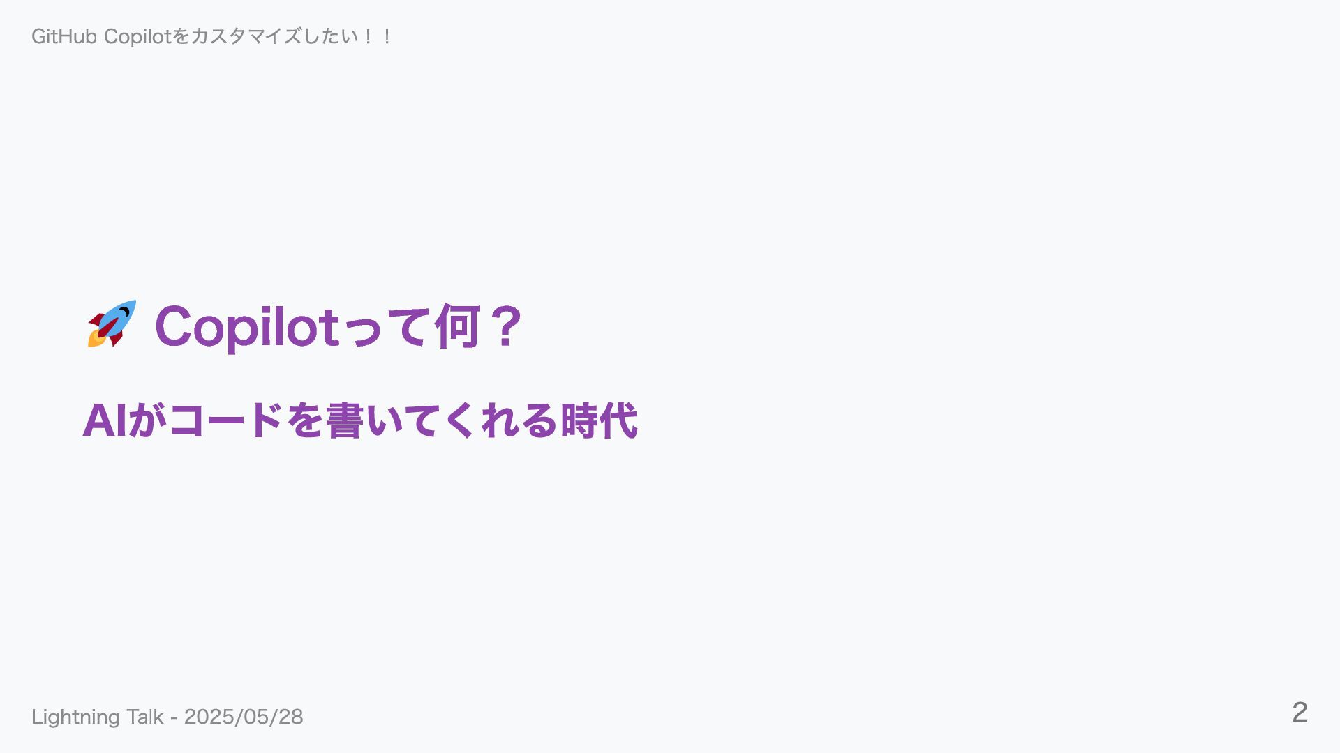 Copilotって何? AIがコードを書いてくれる時代 GitHub Copilotをカスタマイズしたい!! Lightning Talk - 2025/05/28 2
