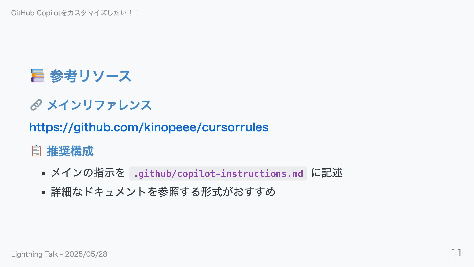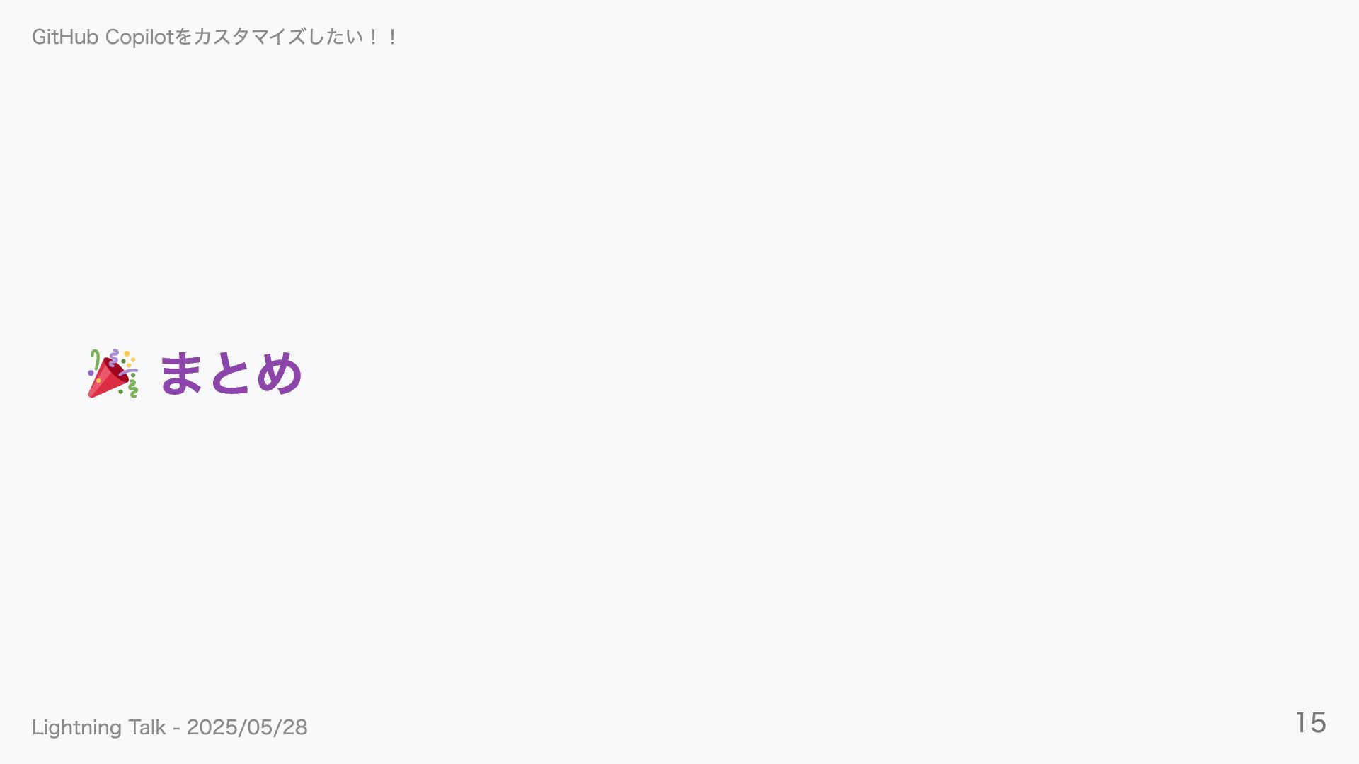 まとめ GitHub Copilotをカスタマイズしたい!! Lightning Talk - 2025/05/28 15