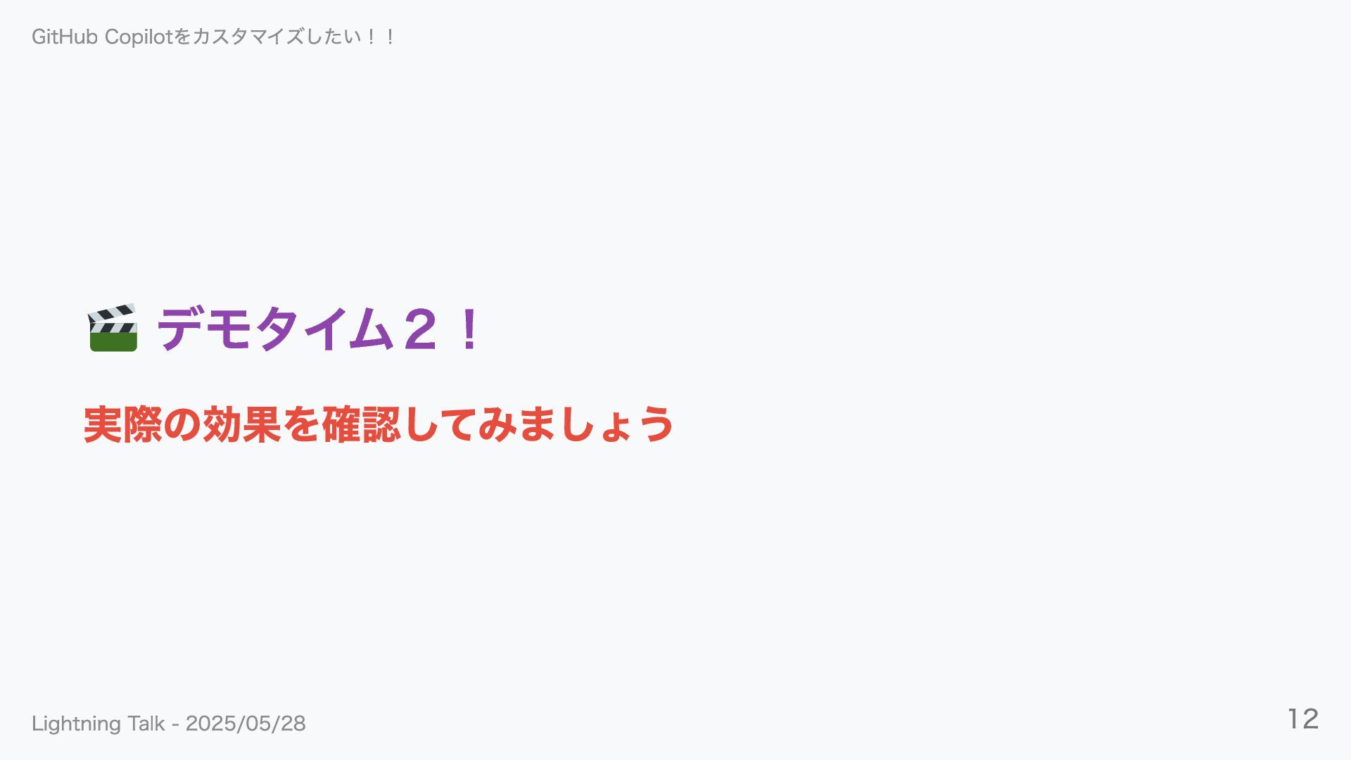 デモタイム2! 実際の効果を確認してみましょう GitHub Copilotをカスタマイズしたい!! Lightning Talk - 2025/05/28 12