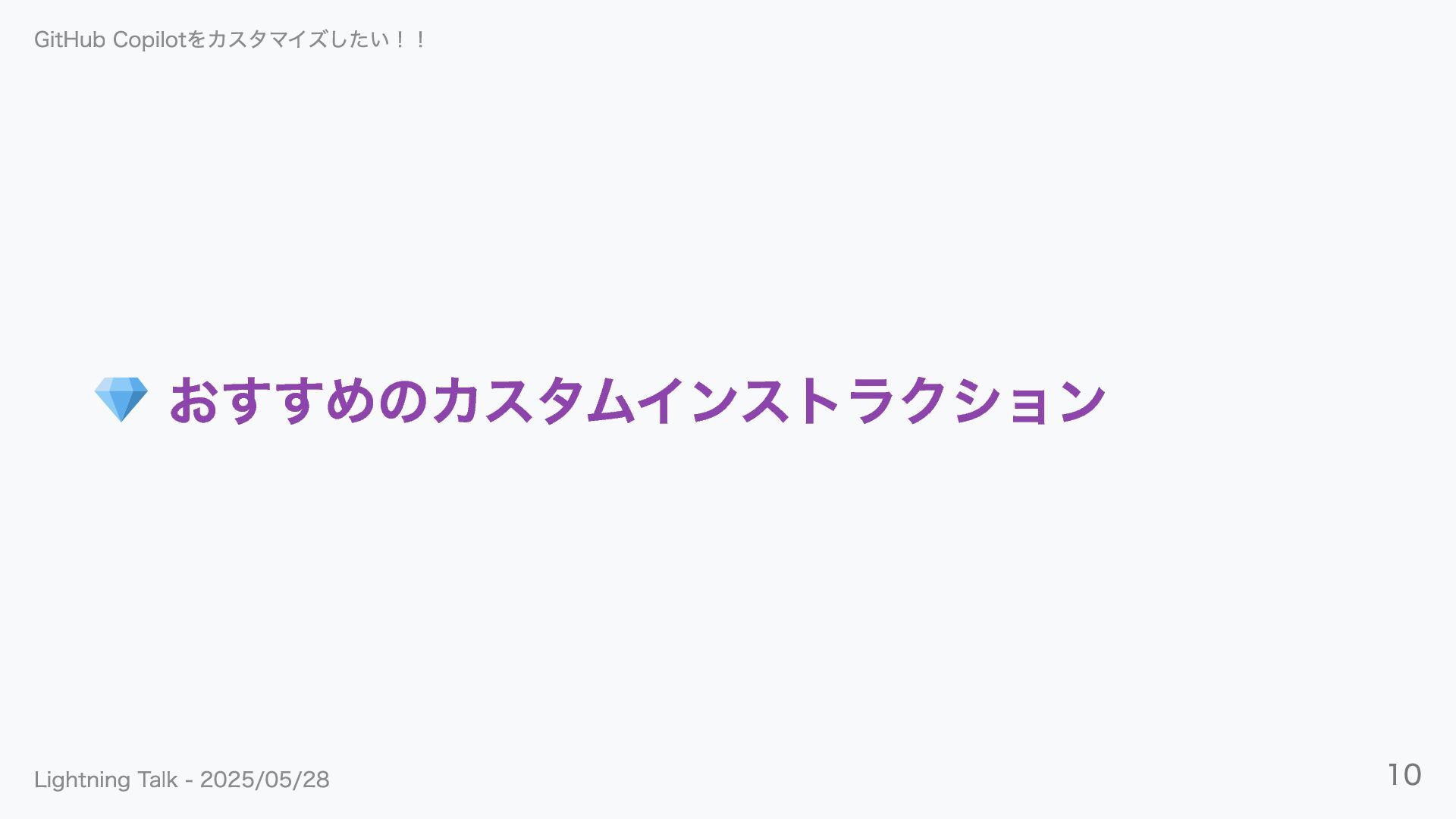 おすすめのカスタムインストラクション GitHub Copilotをカスタマイズしたい!! Lightning Talk - 2025/05/28 10