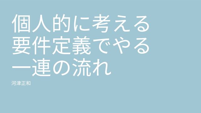 個人的に考える 要件定義でやる 一連の流れ 河津正和