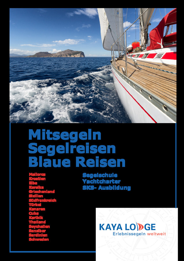 • traditionelle türkische Gulets • feste Termine, garantierte Durchführung • Doppelkabine mit eigener Nasszelle • romantische Buchten • interessante Hafenstops Die Schife Erleben Sie mit uns die schönsten Plätze der Ägäis auf unseren Gulets. Gulets sind klassische Motorsegler aus Holz. Sie wohnen in Doppelka- binen, jede Kabine verfügt über eine eigene Nasszelle mit Dusche/WC. Ihr schwimmendes Hotel mit täglich wechselndem Ausblick garantiert ei- nen unvergess¬lichen Urlaub. An Deck gibt es große Liegelächen, Son- nensegel spenden Schatten und auf den bequemen Polstern können Sie den Sommer genießen. Die Mahlzeiten inden in der Regel am gro- ßen Esstisch im Freien statt. Gefahren wird meist mit Motorantrieb, bei günstigen Wind- und Wetterbedingungen kann auch gesegelt werden. Die Besatzung An Bord gibt es, je nach Schiffsgröße eine zwei- bis vierköpige Besatzung, die dafür sorgt, dass Sie sich rundherum wohl fühlen. Die Mannschaft küm- mert sich gemeinsam um die seglerischen Belange, ist für die Schiffsführung, die Sicherheit an Bord und nicht zuletzt für die Bordküche verantwortlich. Das Essen an Bord Die Mahlzeiten enstsprechen den landestypischen Geplogenheiten. Zum Frühstück servieren wir Weißbrot, Käse, Butter, Marmelade, Eier, Tomaten, Gurken und Oliven. Dazu gibt es Tee, Kaffee und meist etwas Wurst. Mit- tags gibt es ein warmes Essen, Salat und Obst, nachmittags Kaffee, Tee und Kekse. Am Abend zaubert der Koch ein Menü mit Fleisch, Hähnchen oder fangfrischem Fisch. Als Beilagen werden überwiegend Reis oder Nu- deln serviert. Kroatien, Elba, Korsika, Mallorca, Griechenland, Sizilien, Südfrankreich, Türkei und Schweden traditionelle Gulets Aktiv Mitsegeln Blaue Reisen SKS-Ausbildung