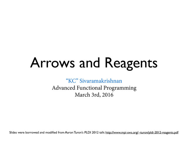 Guest lecture given at Adv. FP class at University of Cambridge on the practical application of Arrows for static and dynamic analysis using the Reagents library. Reagents are a library for Multicore OCaml for expressing and composing fine-grained lock-free data and synchronization structures.