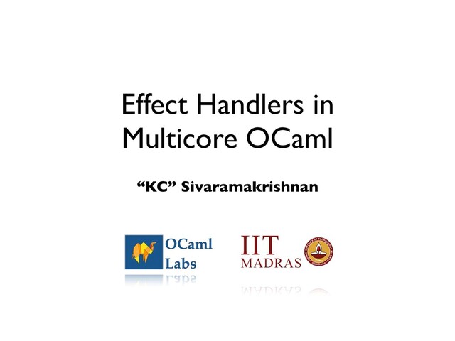guarantee that all the effects performed are handled (c.f. exceptions ) ✦ perform E at the top-level raises Unhandled exception • Effect system in the work s ✦ See also Eff, Koka, Links, Heliu m ✦ Track both user-de f i ned and built-in (ref, io) effect s ✦ OCaml becomes a pure language (in the Haskell sense) let foo () = print_string "hello, world" val foo : unit -[ io ]-> unit Syntax is still in the works • Today, Multicore OCaml effect handler static semantics is simple