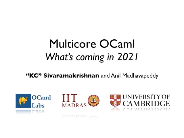 i ned effects • Modular basis of non-local control- f l ow mechanism s ✦ Exceptions, generators, lightweight threads, promises, asynchronous IO, coroutines • Effect declaration separate from interpretation (c.f. exceptions) effect E : string let comp () = print_string "0 "; print_string (perform E); print_string "3 " let main () = try comp () with effect E k -> print_string "1 "; continue k "2 "; print_string “4 " computation handler delimited continuation suspends current computation resume suspended computation effect declaration