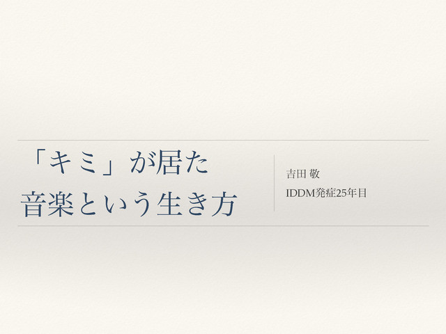 「キミ」が居た音楽という生き方 ~IDDM発症25年目~