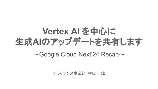 AI Search や Vertex AI Conversation はそれらを纏めて Vertex AI Agent Builder という名称で 再編成。 アプリタイプとして Search, Chat, Recommendations に加え Agent が Preview にて利用可能に。 Agent は、大規模言語モデル単体で実現できないタスク(ビジネスデータへのアクセスやAPIアクセスなど)をToolを通じて実行す ることができるアプリタイプです。LangChain の Agents モジュールで実現するような複雑な処理を自然言語とコンソール操作の みで構築できます。 Prompt LLM Agents Promptの内容に応じて、 LLMへのリクエストの 他に、別のAgentやToolsを呼び出し Agents Tools Request Response Data Store Code Interpreter API 自然言語と コンソール操作の みで構築