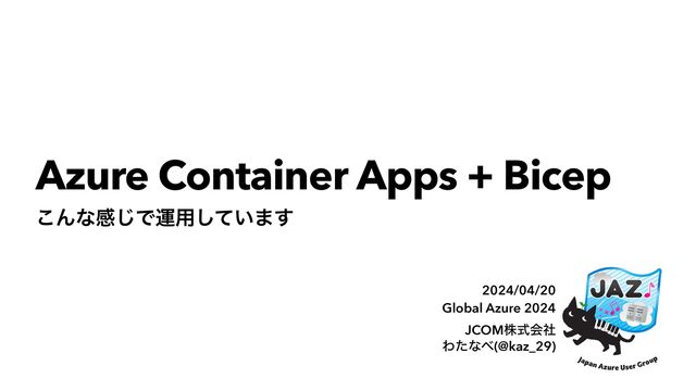Azure Container Apps + Bicep ͜Μͳײ͡Ͱӡ༻͍ͯ͠·͢ 2024/04/20 Global Azure 2024