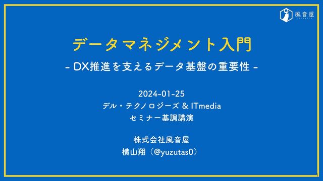 デル・テクノロジーズ様ならびにITmedia様が開催する「データ仮想化」セミナーの登壇資料です。