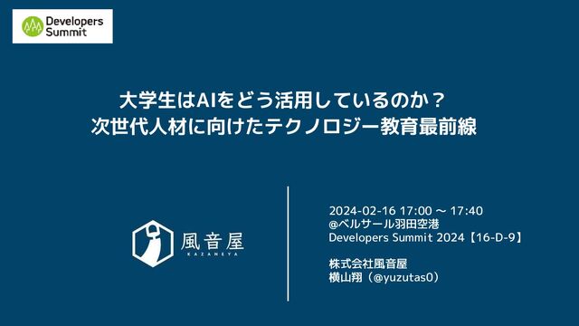 テクノロジーカンファレンス「Developers Summit 2024」の登壇資料です。