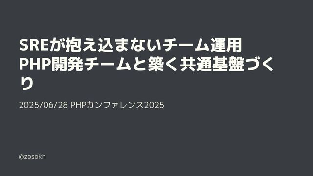 SREが抱え込まないチーム運用 PHP開発チームと築く共通基盤づく り 2025/06/28 PHPカンファレンス2025 @zosokh