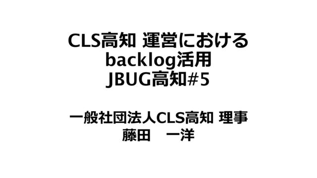 CLS⾼知 運営における backlog活⽤ JBUG⾼知#5 ⼀般社団法⼈CLS⾼知 理事 藤⽥ ⼀洋