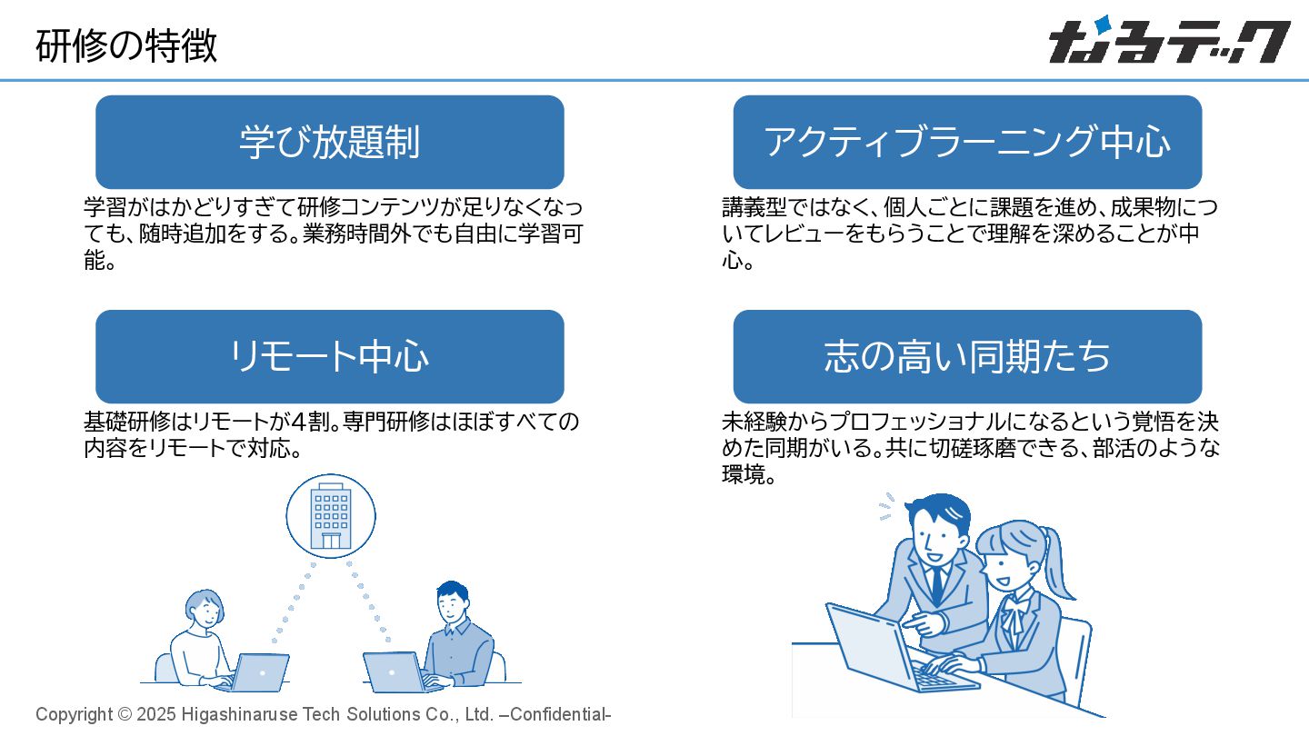27. Copyright © 2025 Higashinaruse Tech Solutions Co., Ltd. –Confidential- 研修の特徴