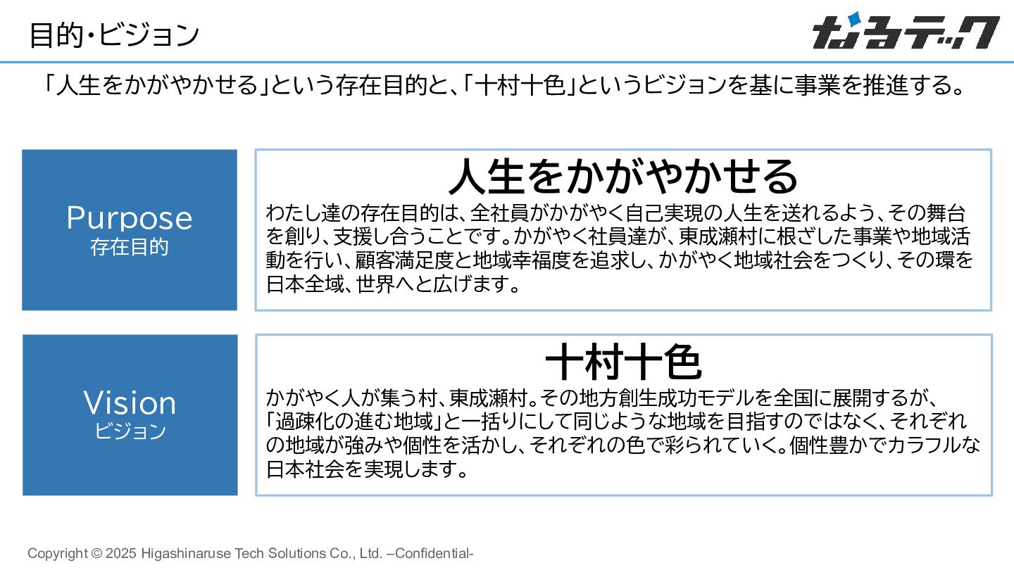 10. Copyright © 2025 Higashinaruse Tech Solutions Co., Ltd. –Confidential- 目的・ビジョン