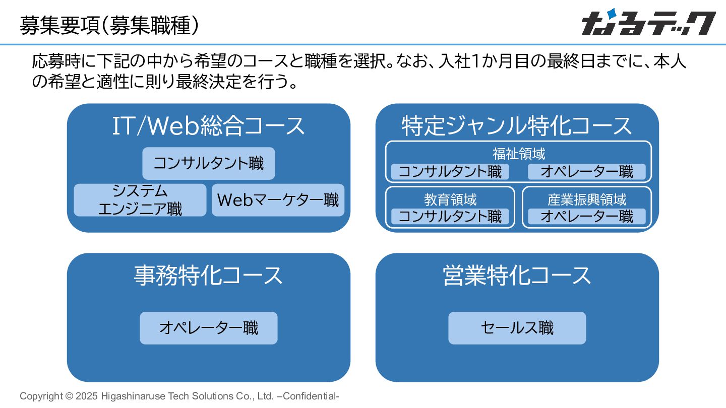 19. Copyright © 2025 Higashinaruse Tech Solutions Co., Ltd. –Confidential- 募集要項(募集職種)