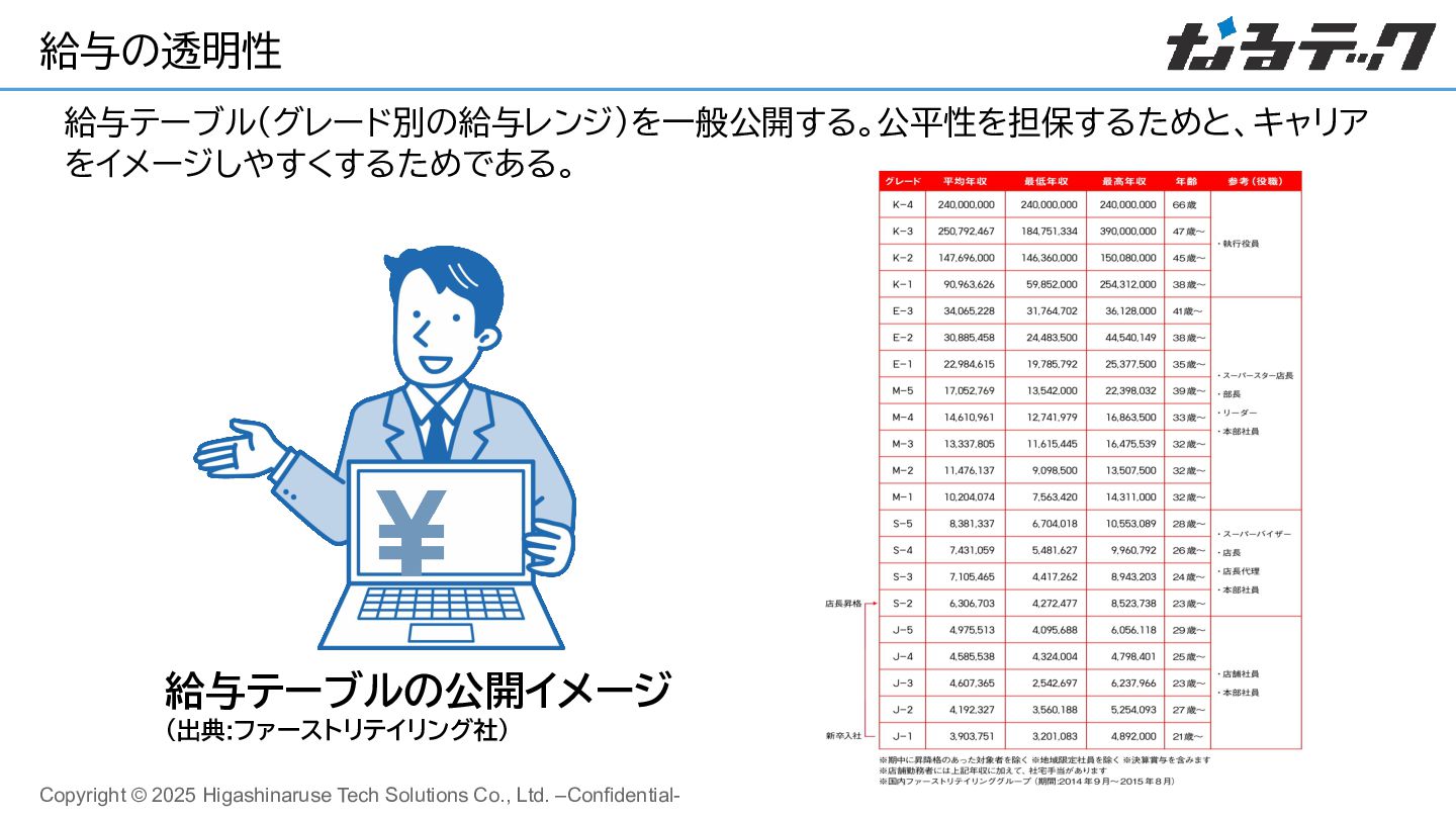 22. Copyright © 2025 Higashinaruse Tech Solutions Co., Ltd. –Confidential- 給与の透明性