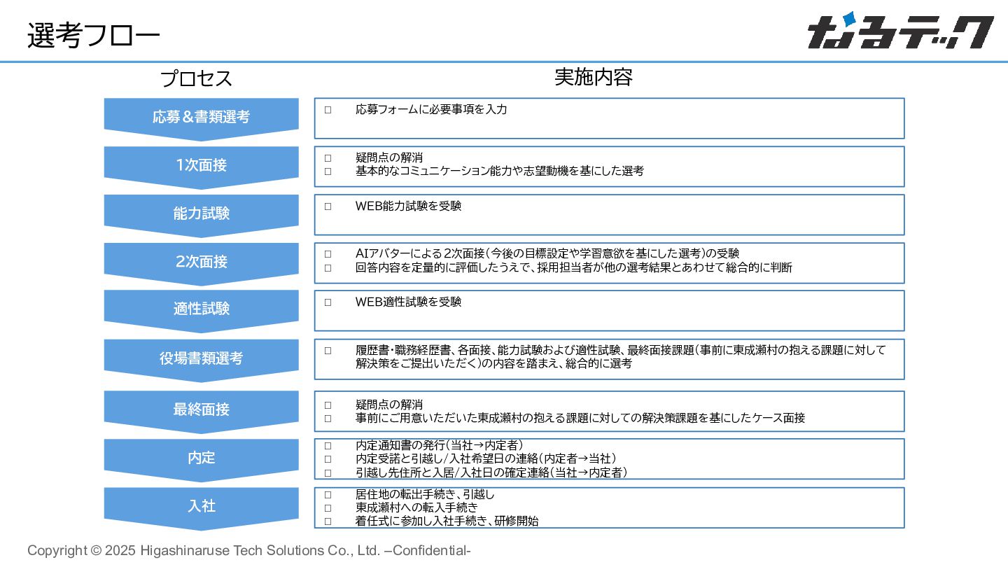 29. Copyright © 2025 Higashinaruse Tech Solutions Co., Ltd. –Confidential- 選考フロー