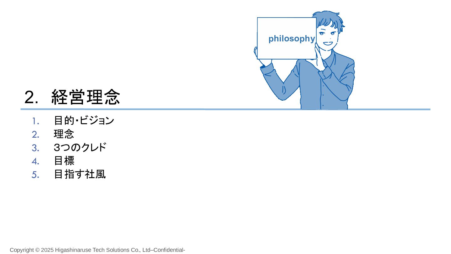 9. Copyright © 2025 Higashinaruse Tech Solutions Co., Ltd–Confidential- 2. 経営理念 1.