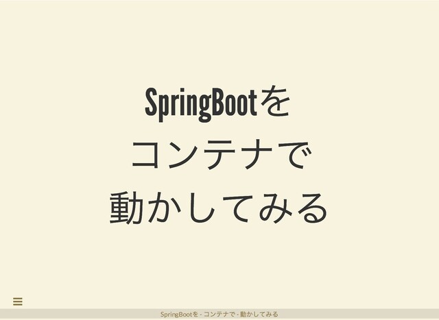 SpringBoot を SpringBoot を コンテナで コンテナで 動かしてみる 動かしてみる SpringBoot を