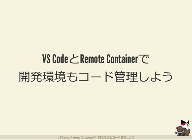 VS CodeとRemote Containerで VS CodeとRemote Containerで 開発環境もコード管理しよう 開発環境もコード管理しよう VS CodeとRemote