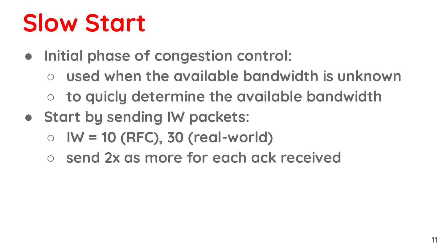 available bandwidth is unknown ◦ to quicly determine the available bandwidth Slow Start 10