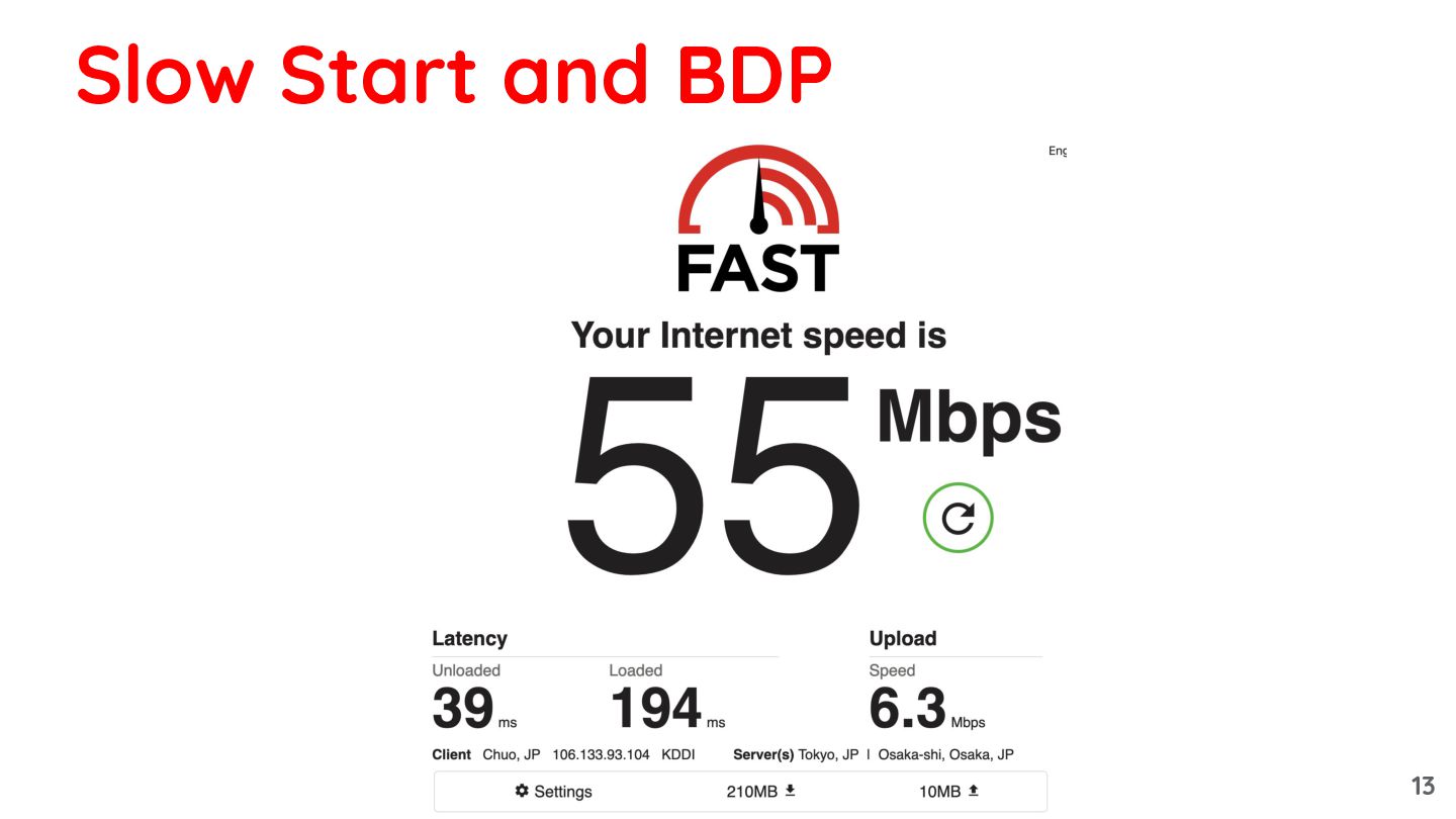 13. • Idle BDP = 55Mb/s * 0.039s ≒ 2.15Mb ≒