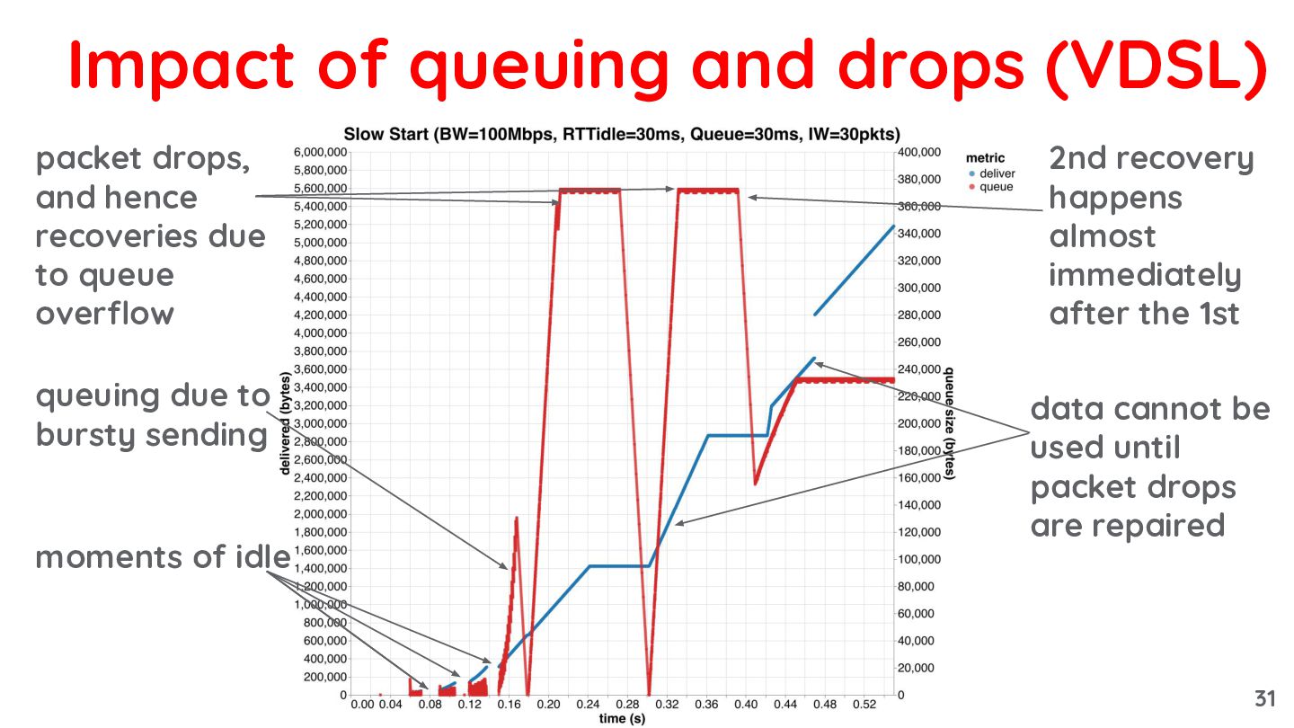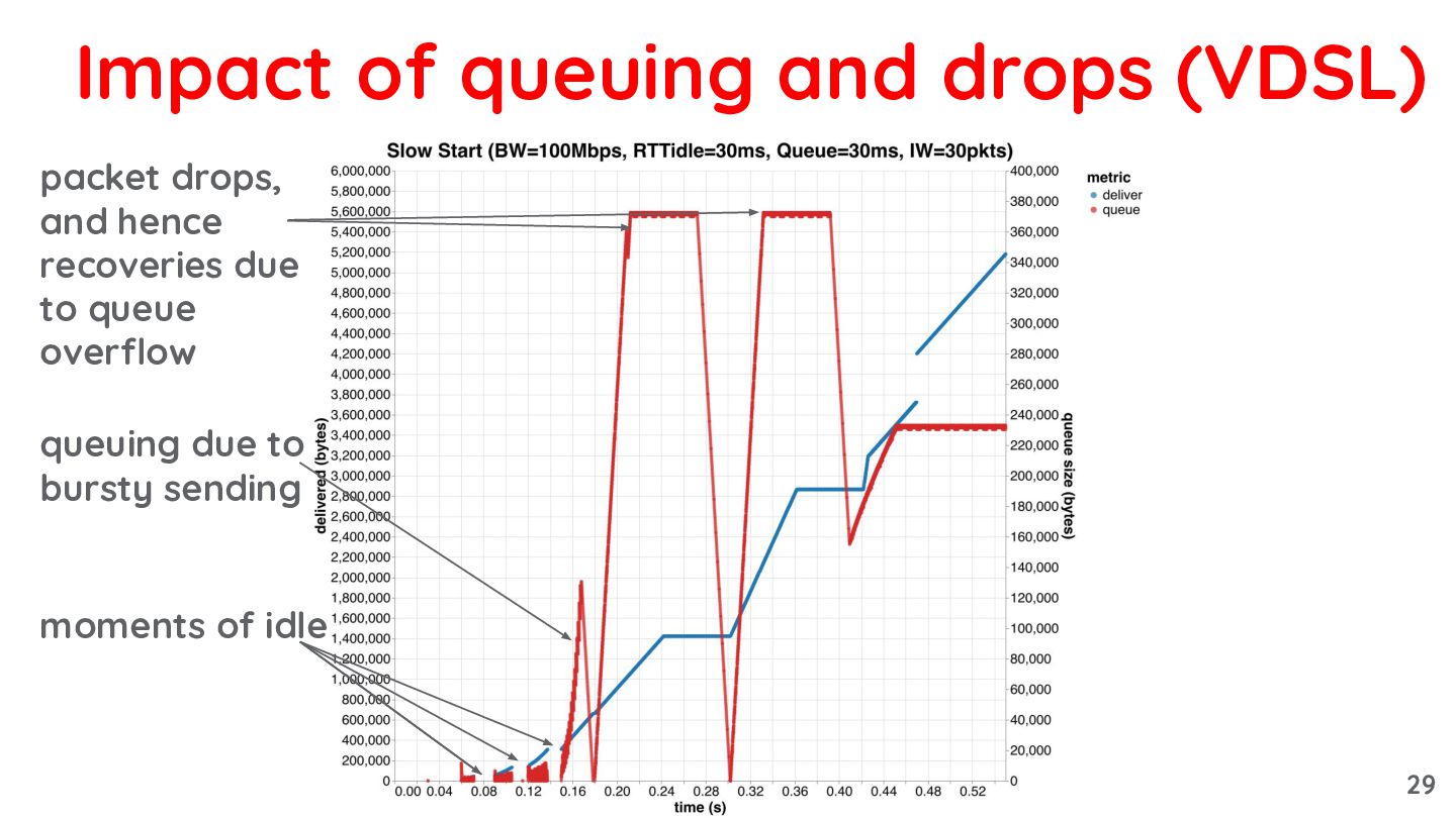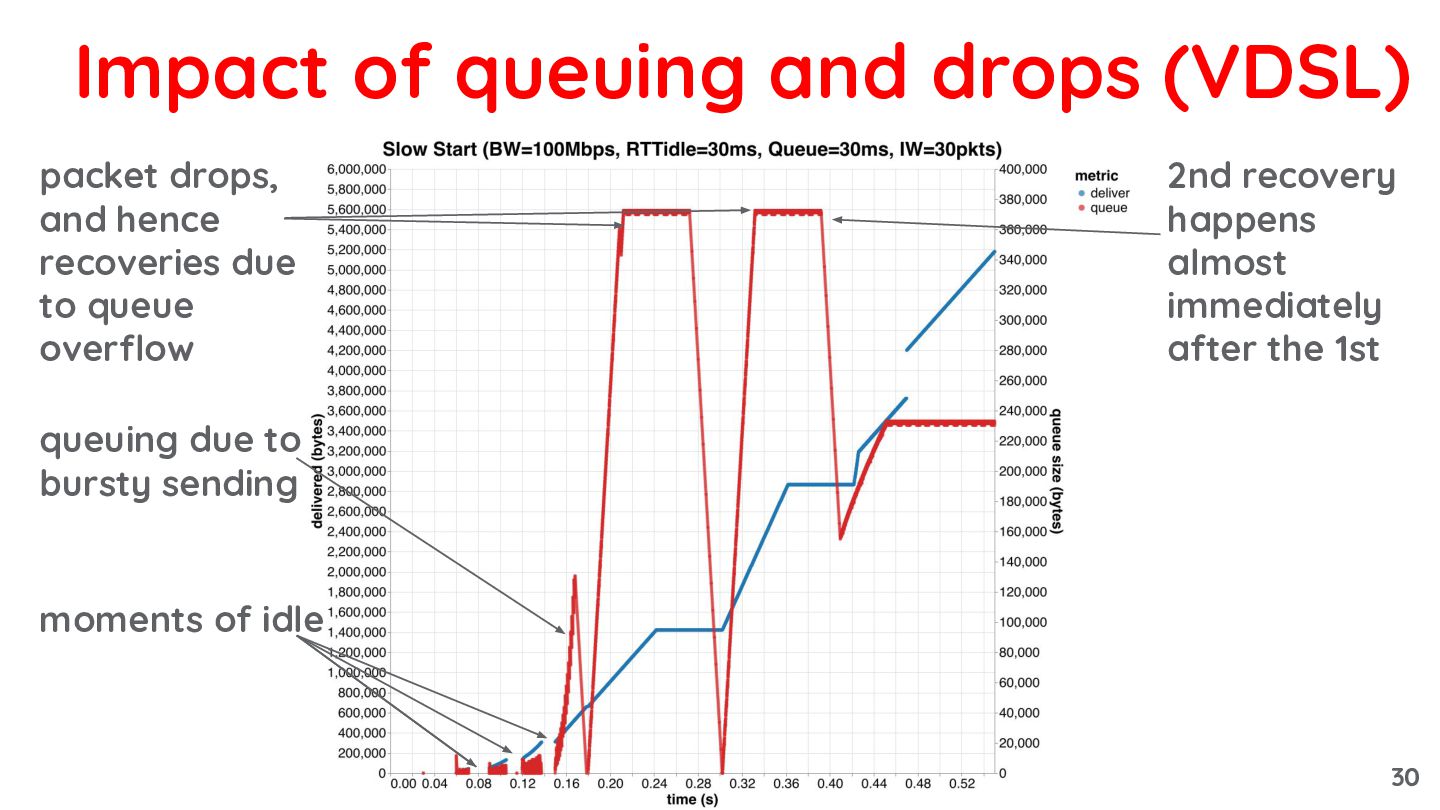 due to bursty sending packet drops, and hence recoveries due to queue overflow 29