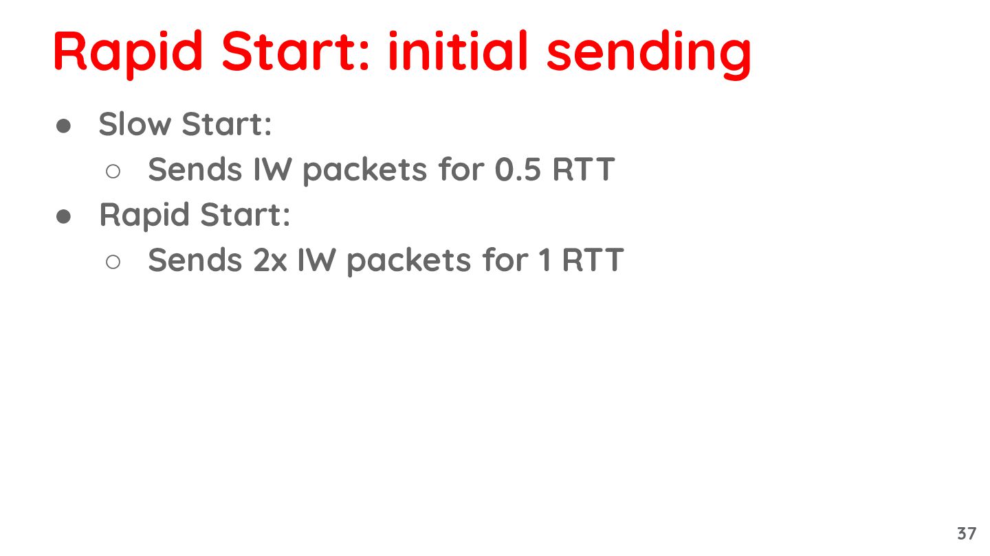 • Rapid Start: ◦ Sends 2x IW packets for 1 RTT Rapid Start: initial sending 37