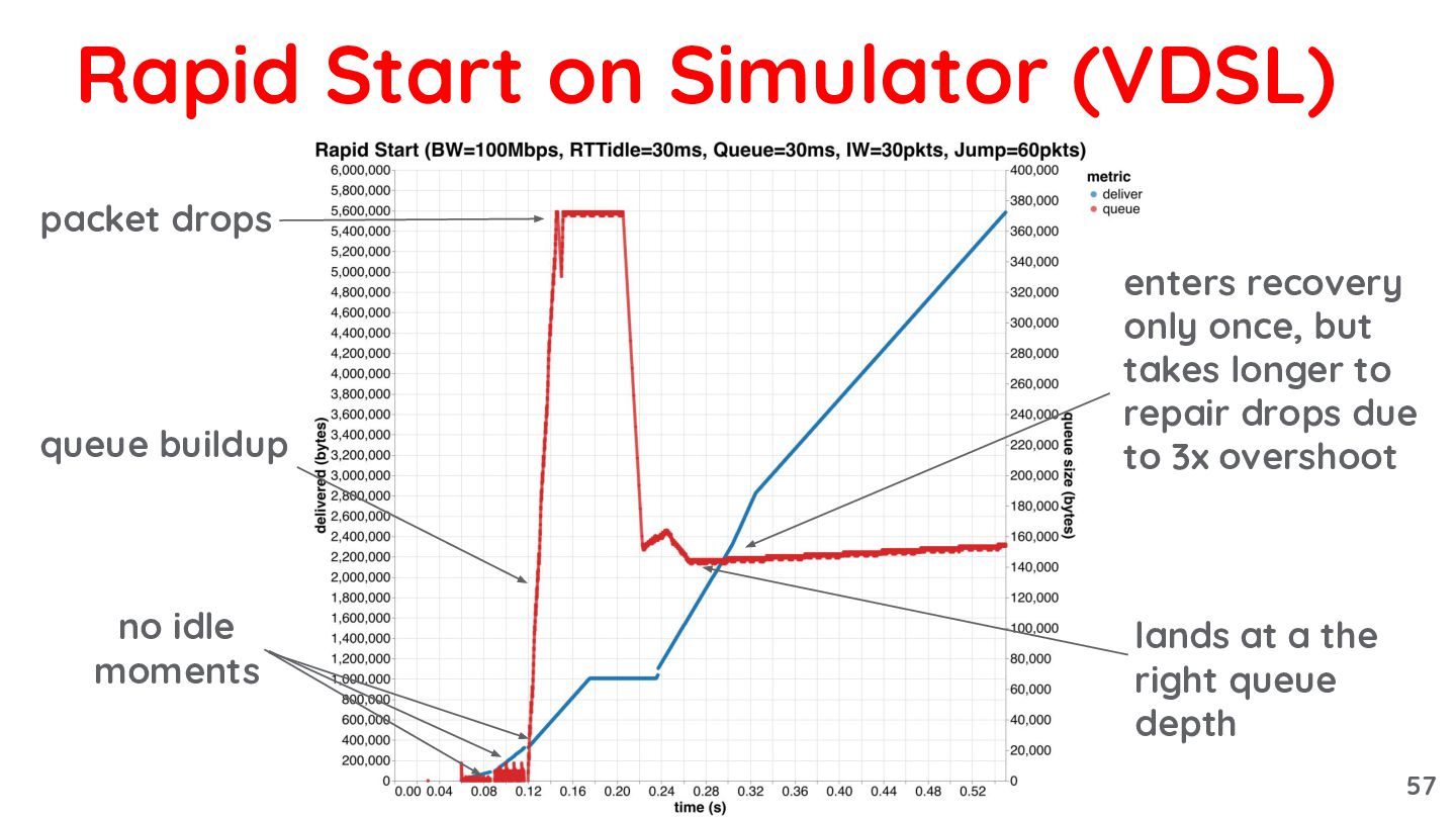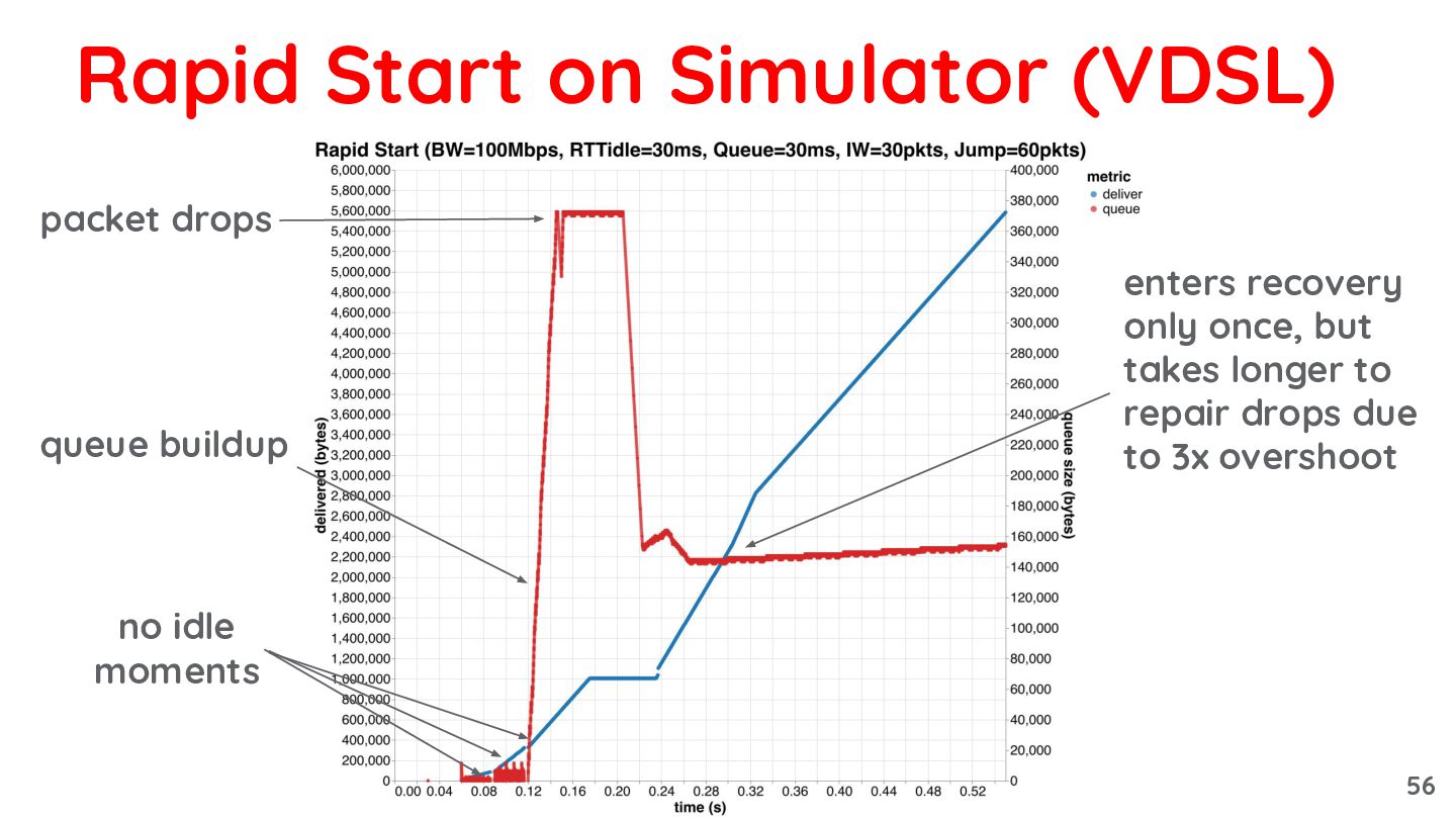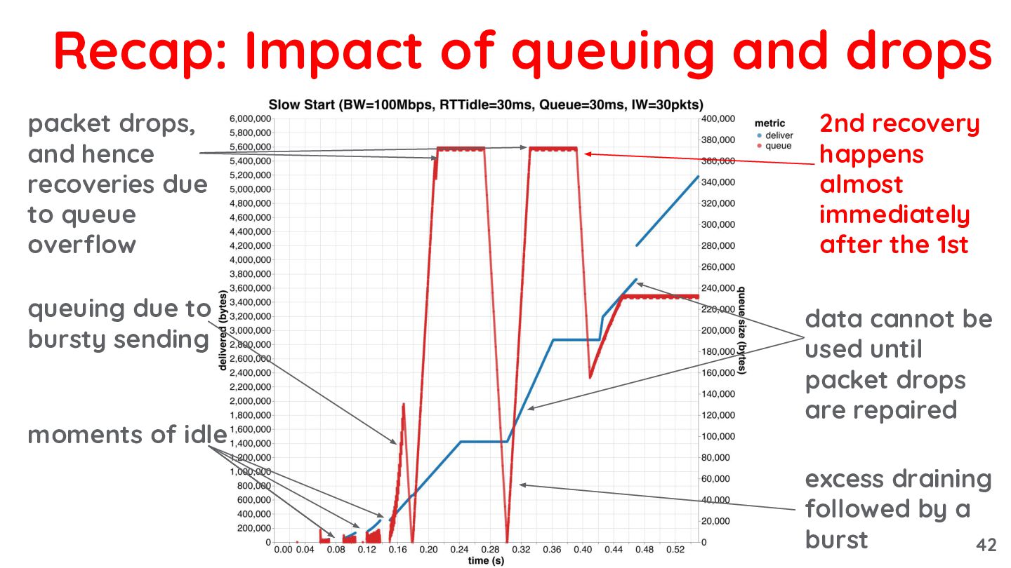 takes longer to repair drops due to 3x overshoot no idle moments queue buildup packet drops 56