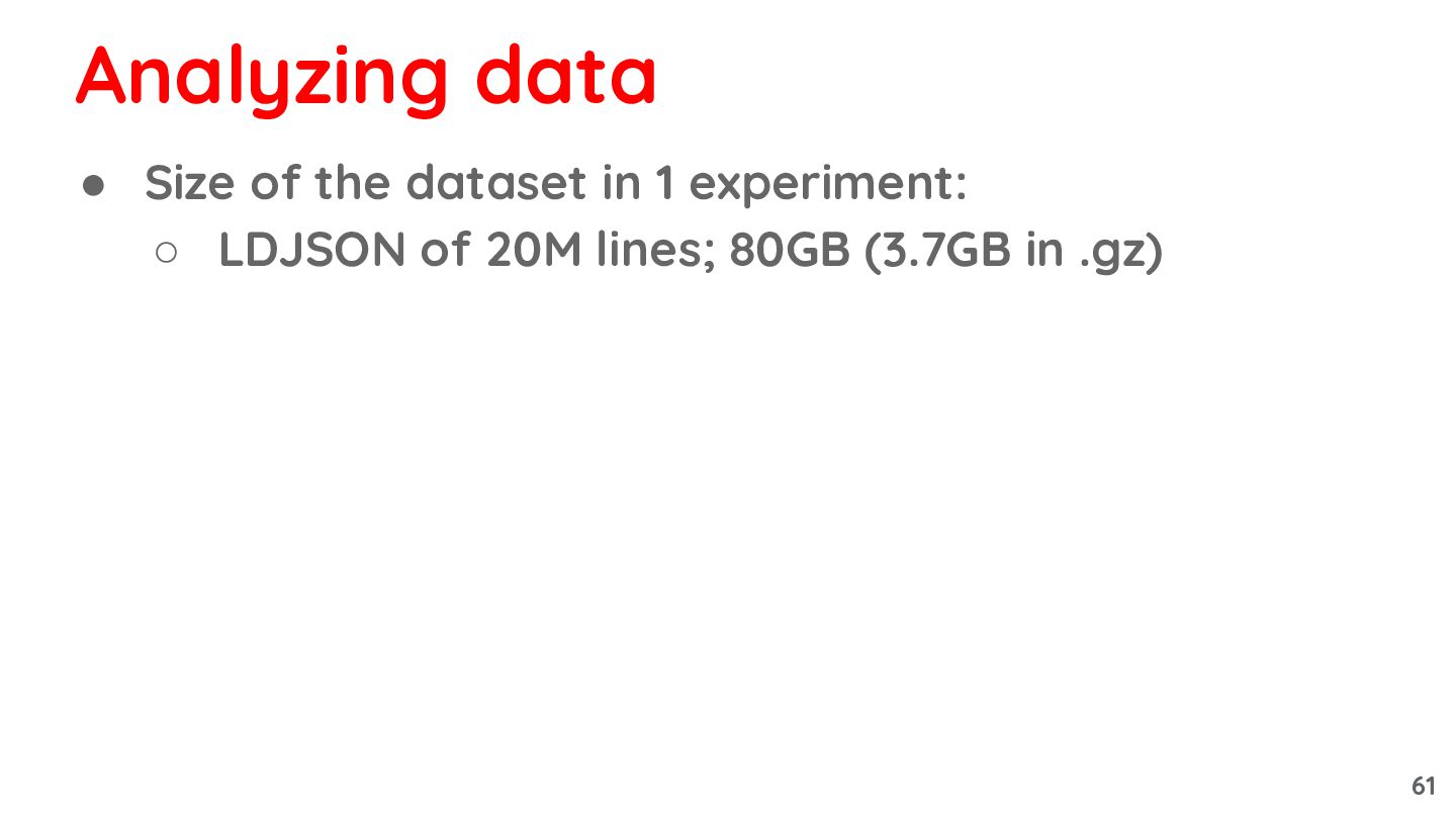 of 20M lines; 80GB (3.7GB in .gz) Analyzing data 61