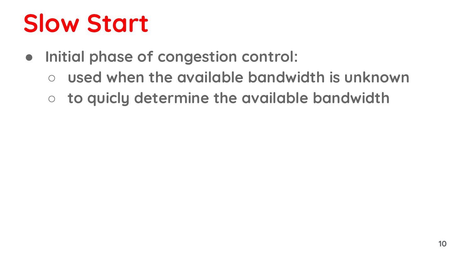 9. • Initial phase of congestion control: ◦ used when the