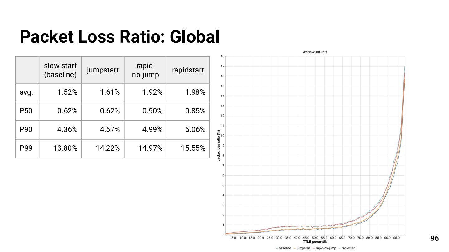 77. Packet Loss Ratio: Global 96 slow start (baseline) jumpstart rapid-