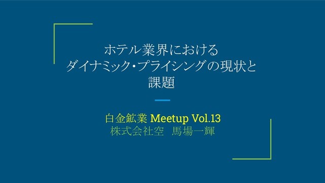ホテル業界における ダイナミック・プライシングの現状と 課題 白金鉱業 Meetup Vol.13 株式会社空 馬場一輝
