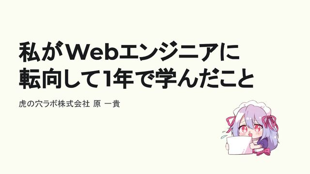 虎の穴ラボ株式会社 原 一貴 私がWebエンジニアに 転向して1年で学んだこと