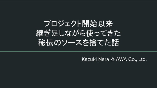 プロジェクト開始以来 継ぎ足しながら使ってきた 秘伝のソースを捨てた話 Kazuki Nara @ AWA Co., Ltd.