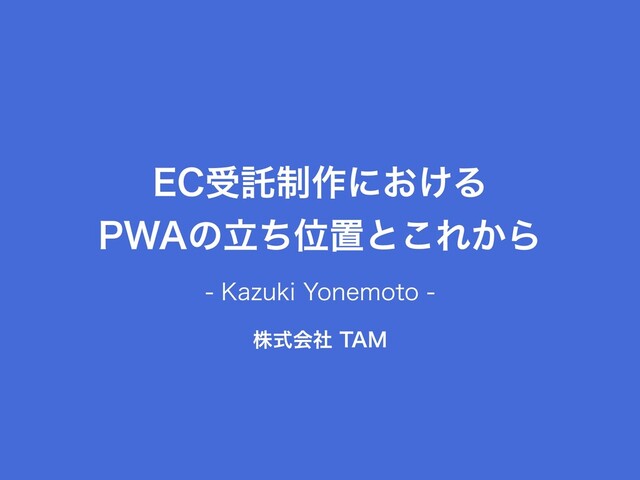 Eコマースのトータルサポートを得意とするTAM ECチームが考えるPWAの立ち位置や、クラアントワークの中でどのようにPWAを提案したいと考えているかについてお話します。