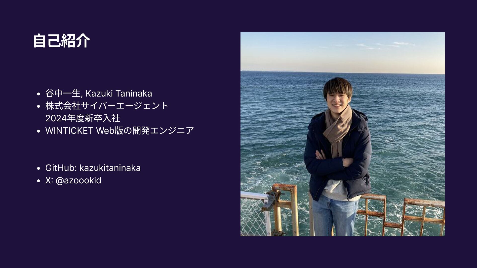 谷中一生, Kazuki Taninaka 株式会社サイバーエージェント 2024年度新卒入社 WINTICKET Web版の開発エンジニア GitHub: kazukitaninaka X: