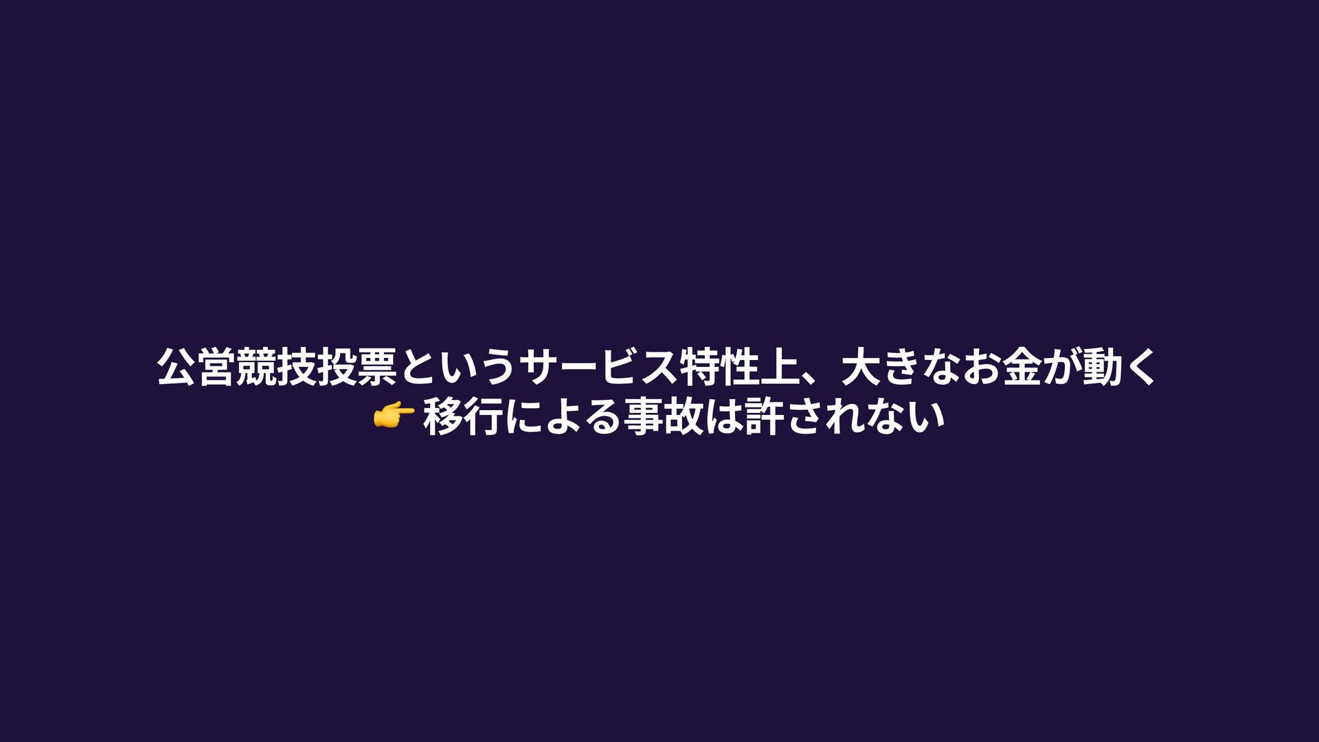 公営競技投票というサービス特性上、大きなお金が動く 移行による事故は許されない