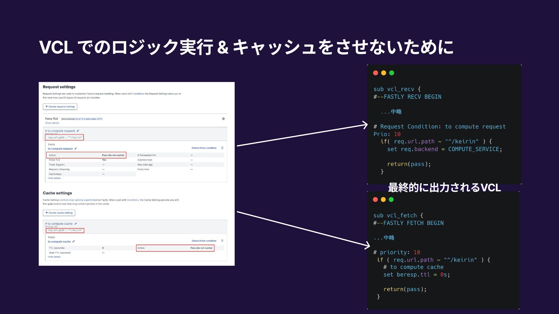 VCL でのロジック実行 & キャッシュをさせないために 最終的に出力されるVCL