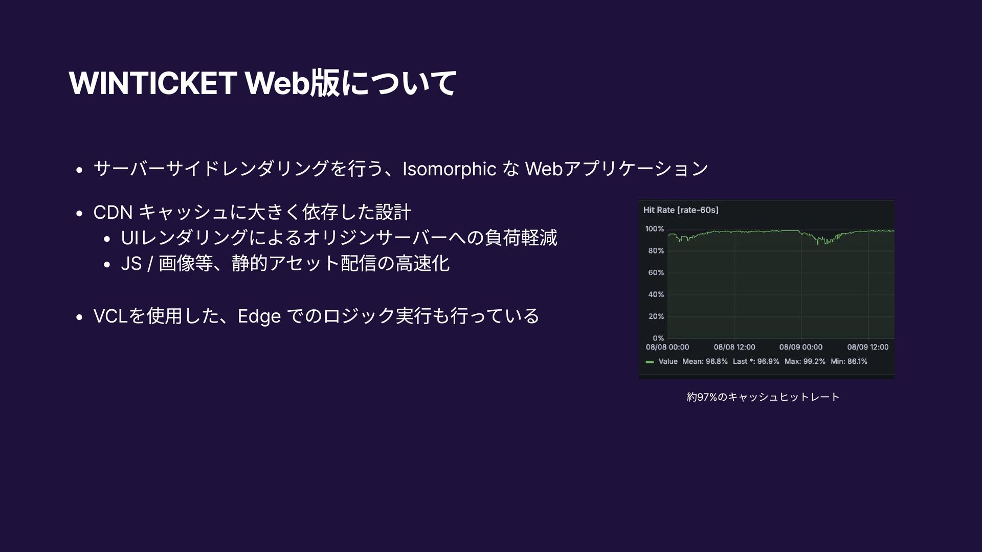 でのロジック実行も行っている WINTICKET Web版について 約97%のキャッシュヒットレート