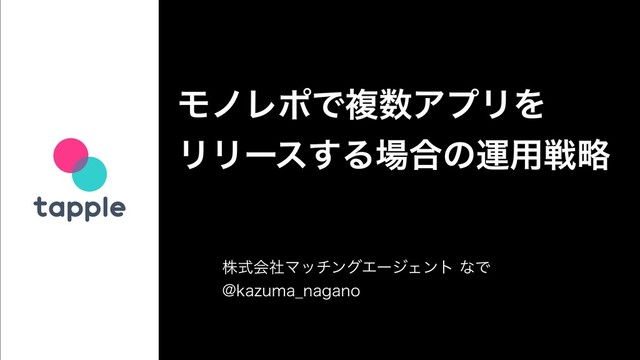 ϞϊϨϙͰෳΞϓϦΛ ϦϦʔε͢Δ߹ͷӡ༻ઓུ גࣜձࣾϚονϯάΤʔδΣϯτͳͰ !LB[VNB@OBHBOP