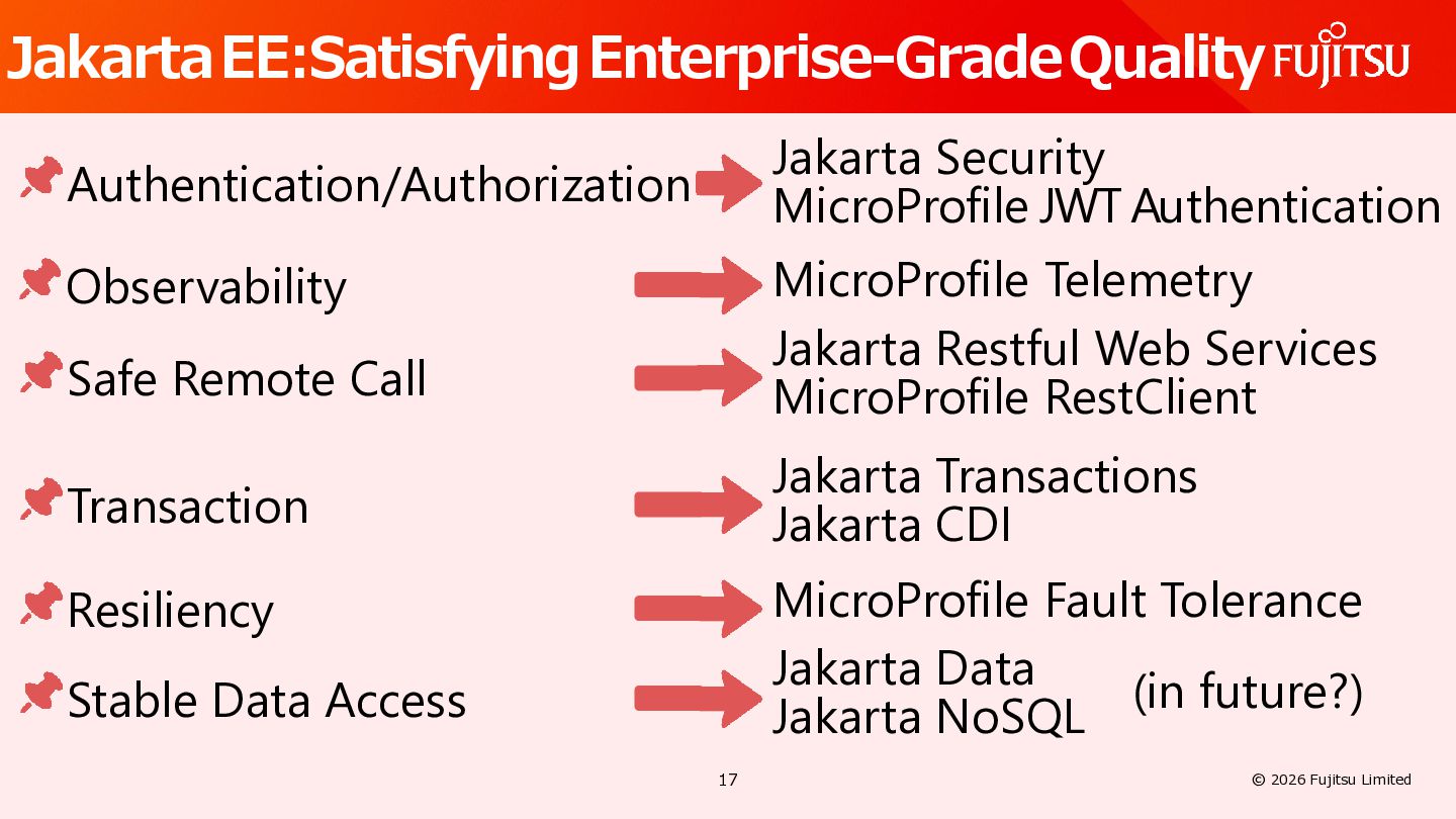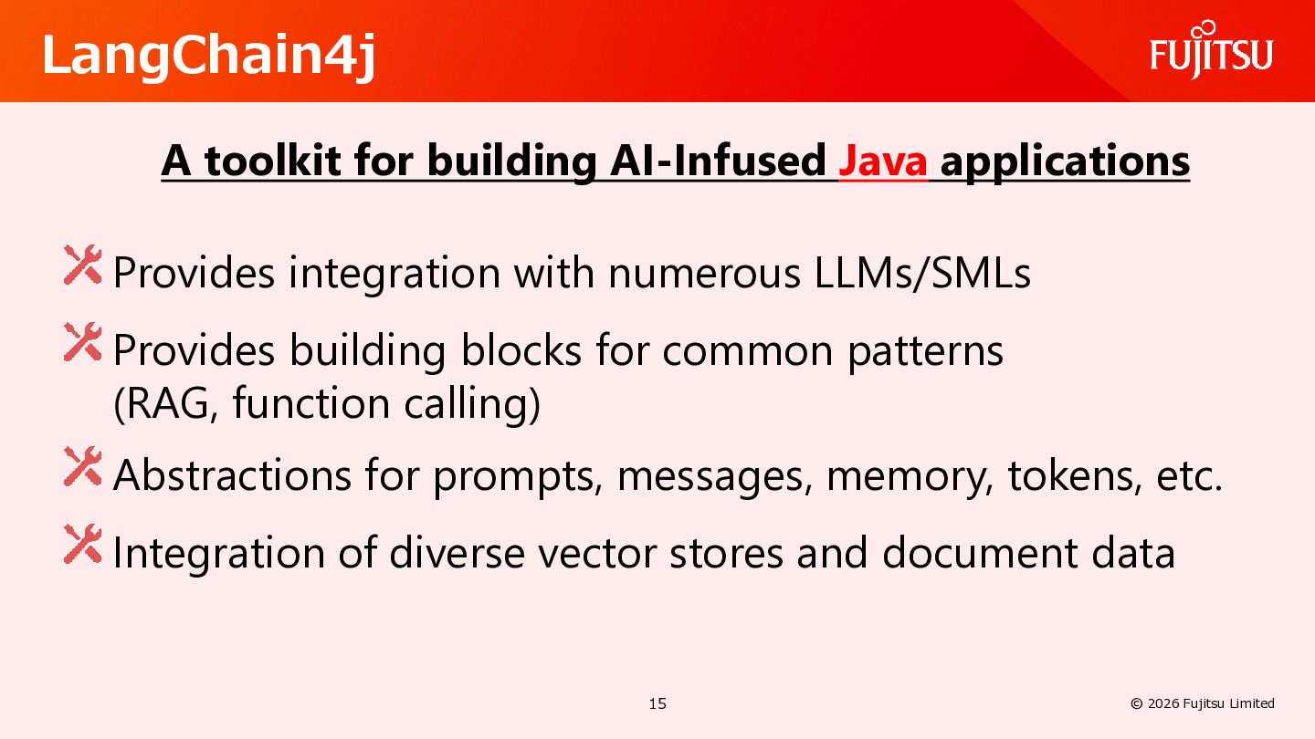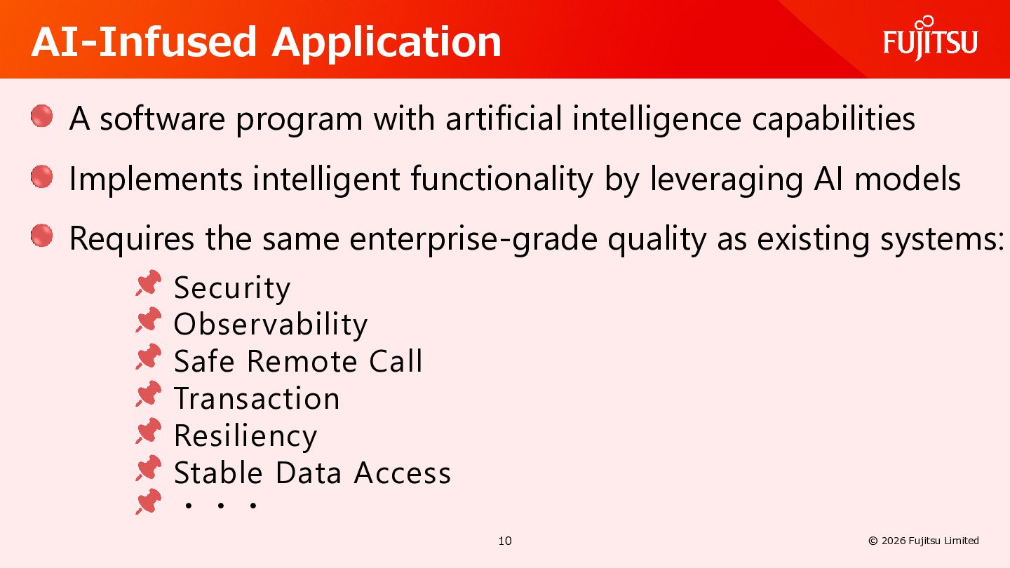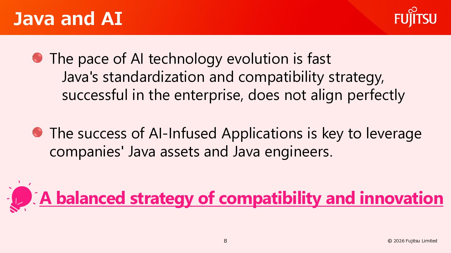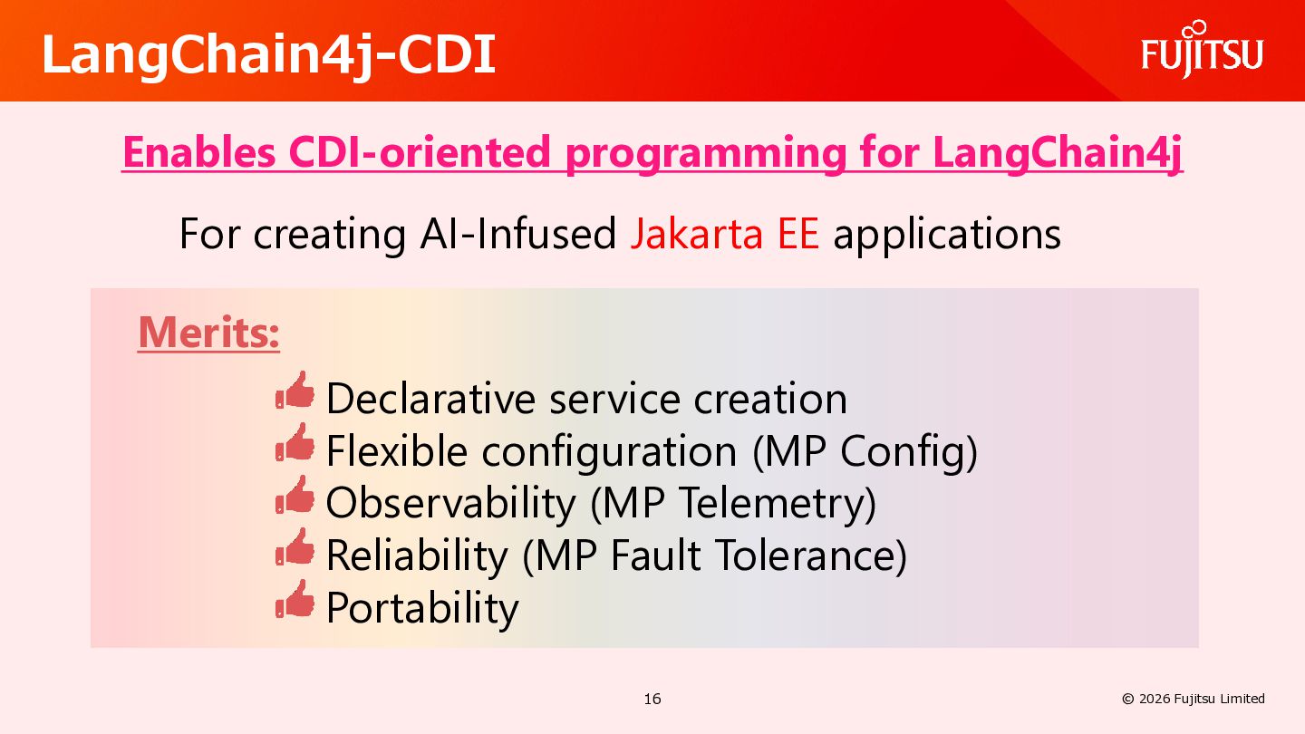 AI Defines common usage patterns and life cycles for AI agents running on Jakarta EE runtimes. The API will include a mechanism to define agent workflows. https://github.com/jakartaee/agentic-ai/blob/main/README.md#scope Defines integrations with other key Jakarta EE APIs such as Validation, REST, JSON Binding, Persistence, Data, Transactions, NoSQL, Concurrency, Security, Messaging, and so on. 26