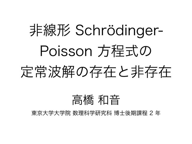 横浜国立大学における微分方程式セミナー (通算第 39 回) 2016 年 8 月 26日 横浜国立大学・理工学部講義棟