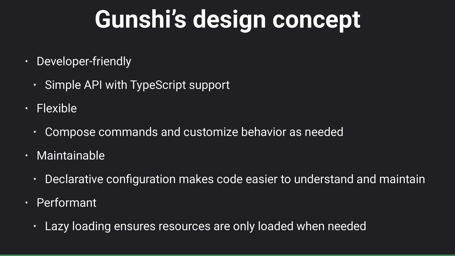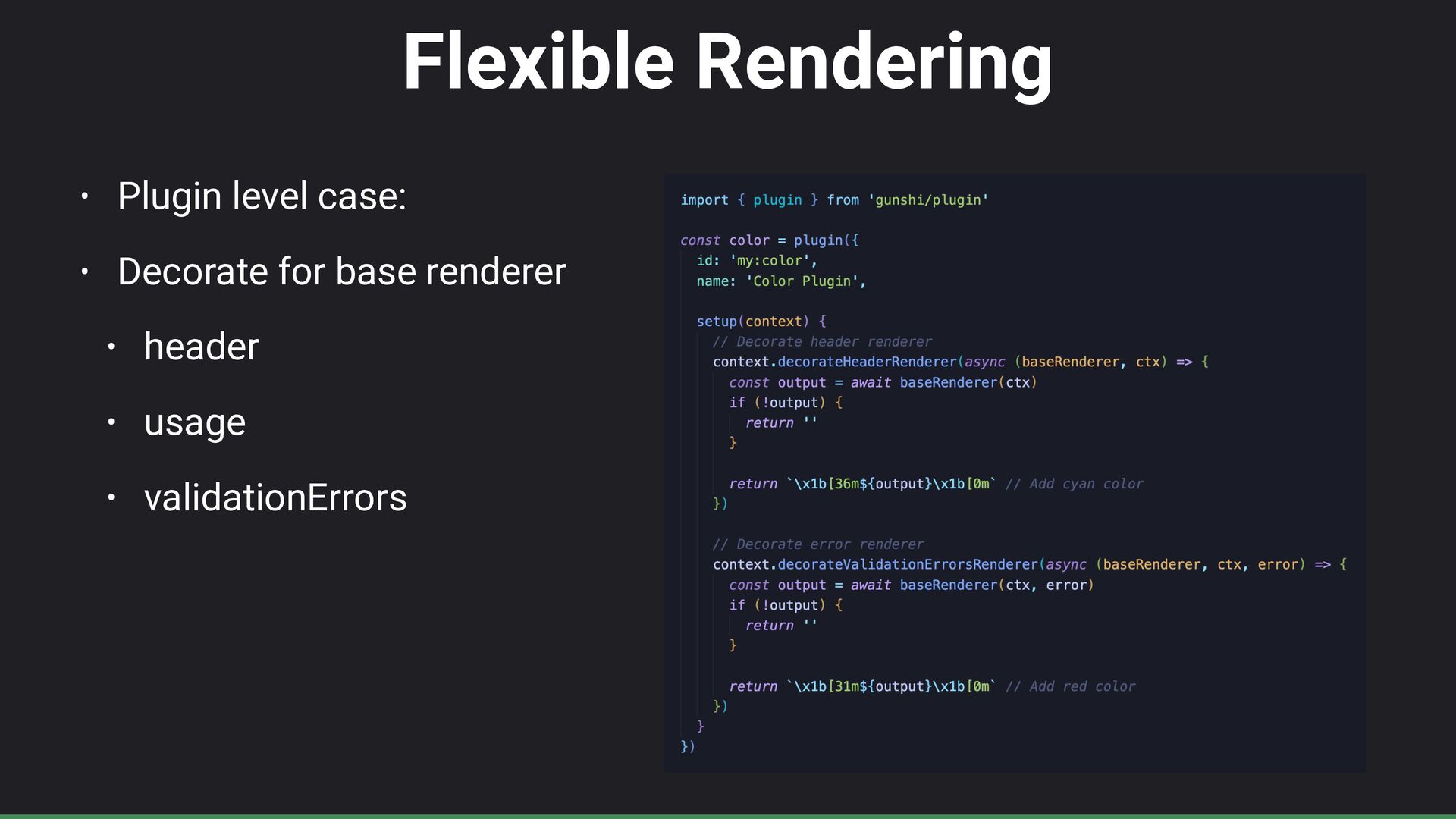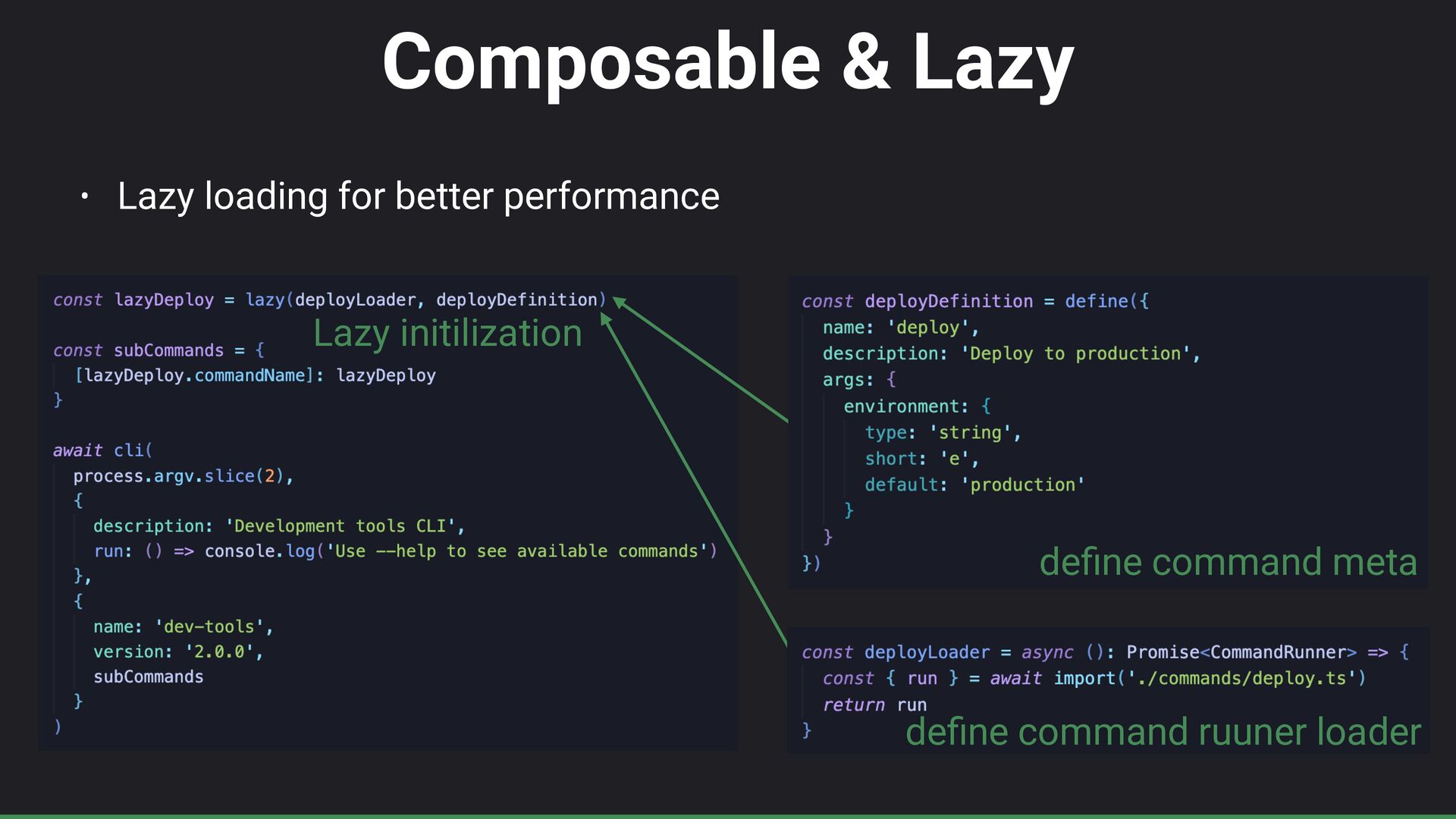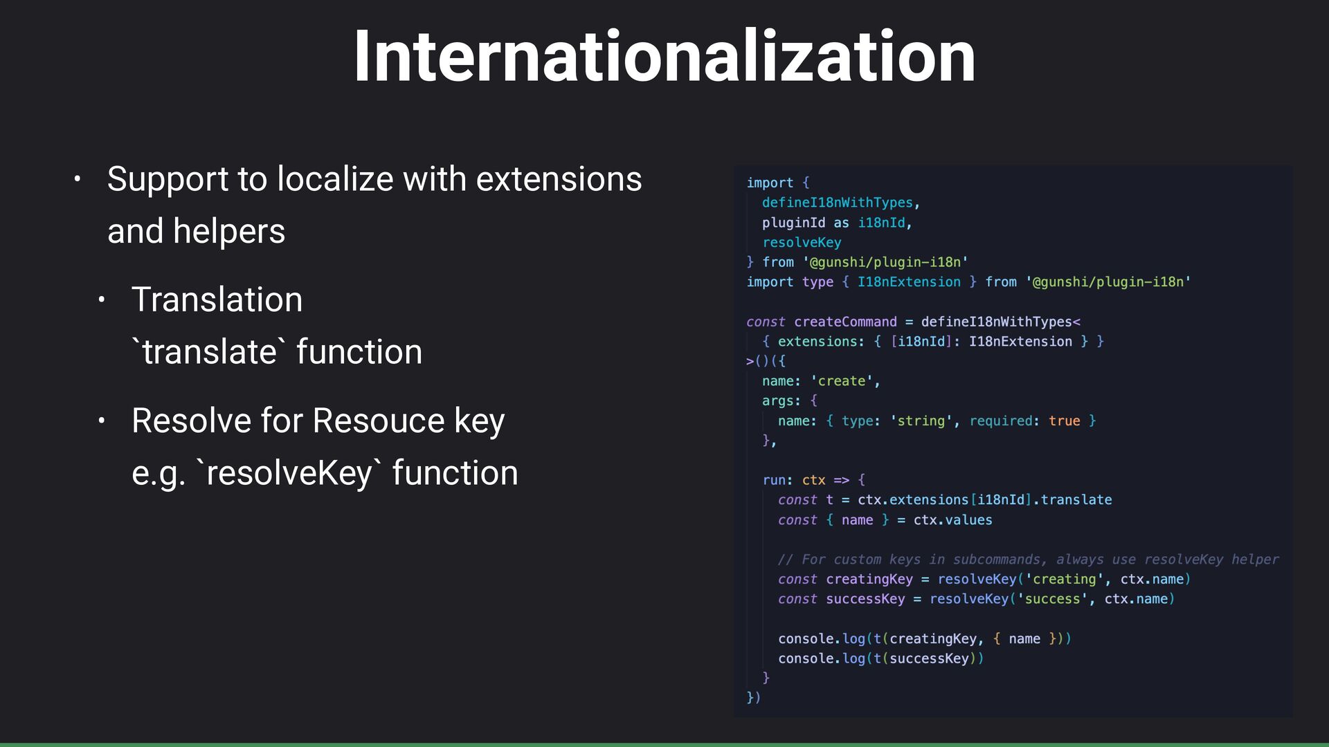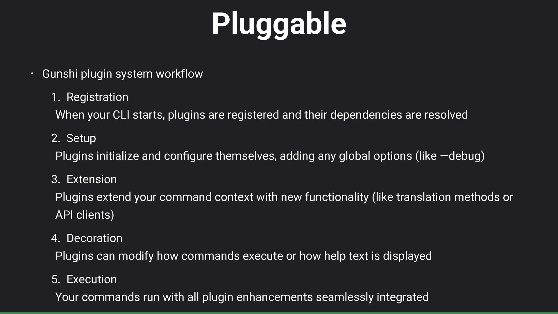 properties • `type`: 'string', 'number', 'boolean', ‘positional', ‘enum’, 'custom' • `description`: A description of what the option does • `short`: A single-character alias (e.g. -n for —name) • `default`: Default value if the option is not provided • `required`: Set to `true` if the option is required • `multiple`: Set to `true` if multiple option values are allowed