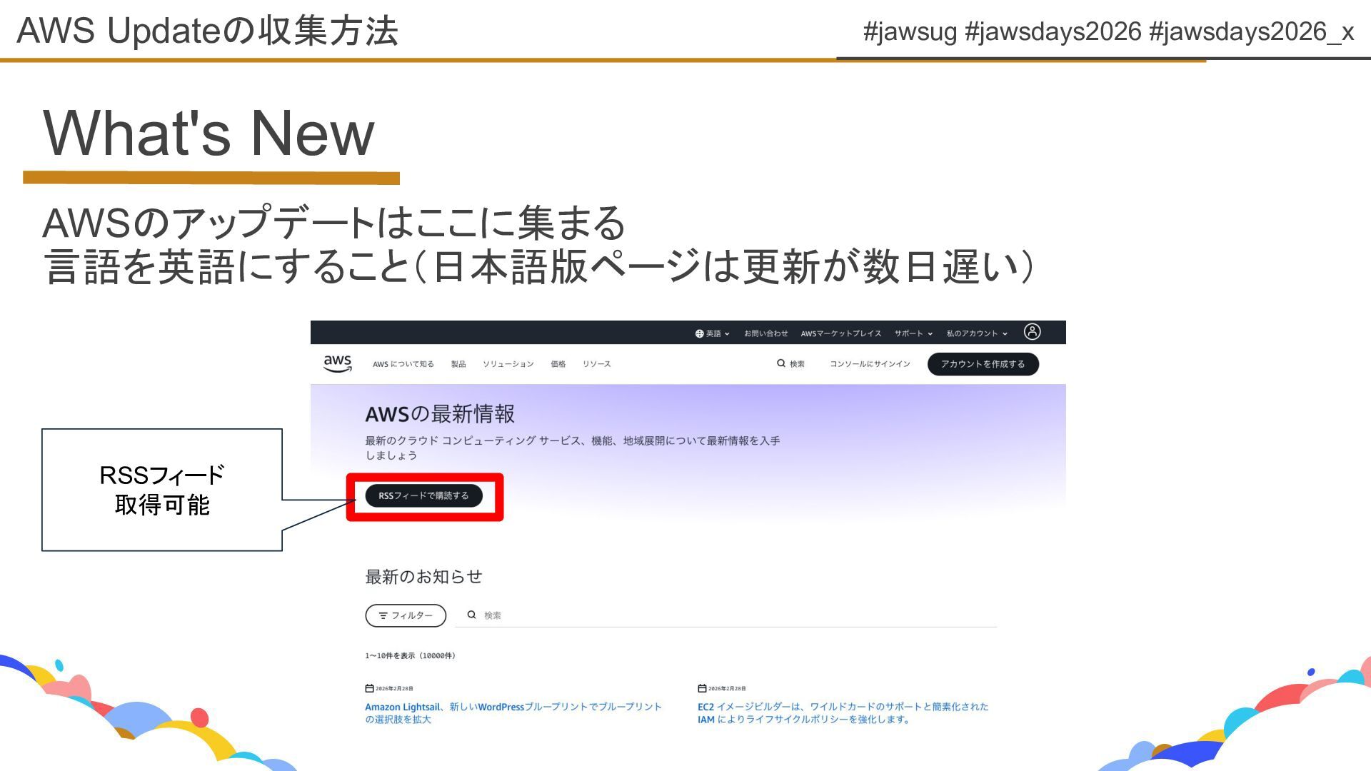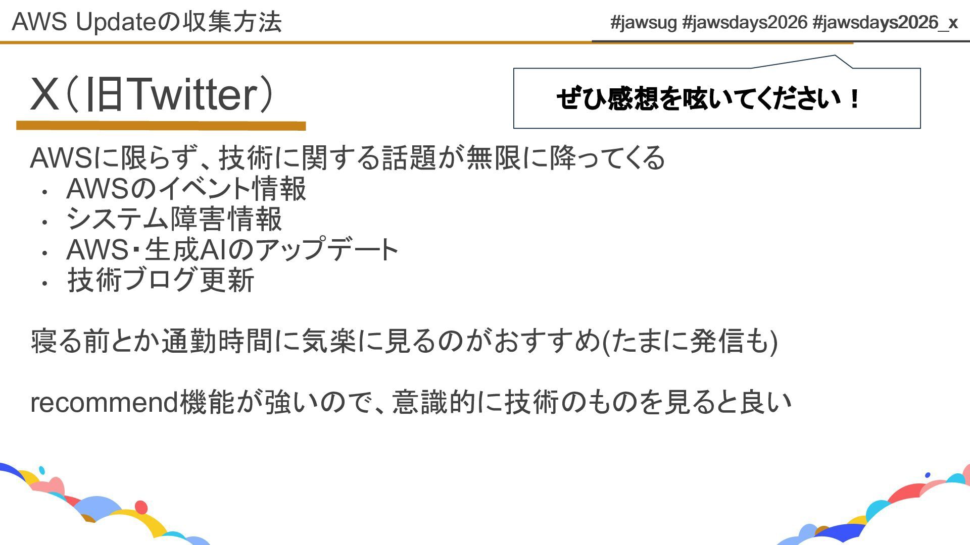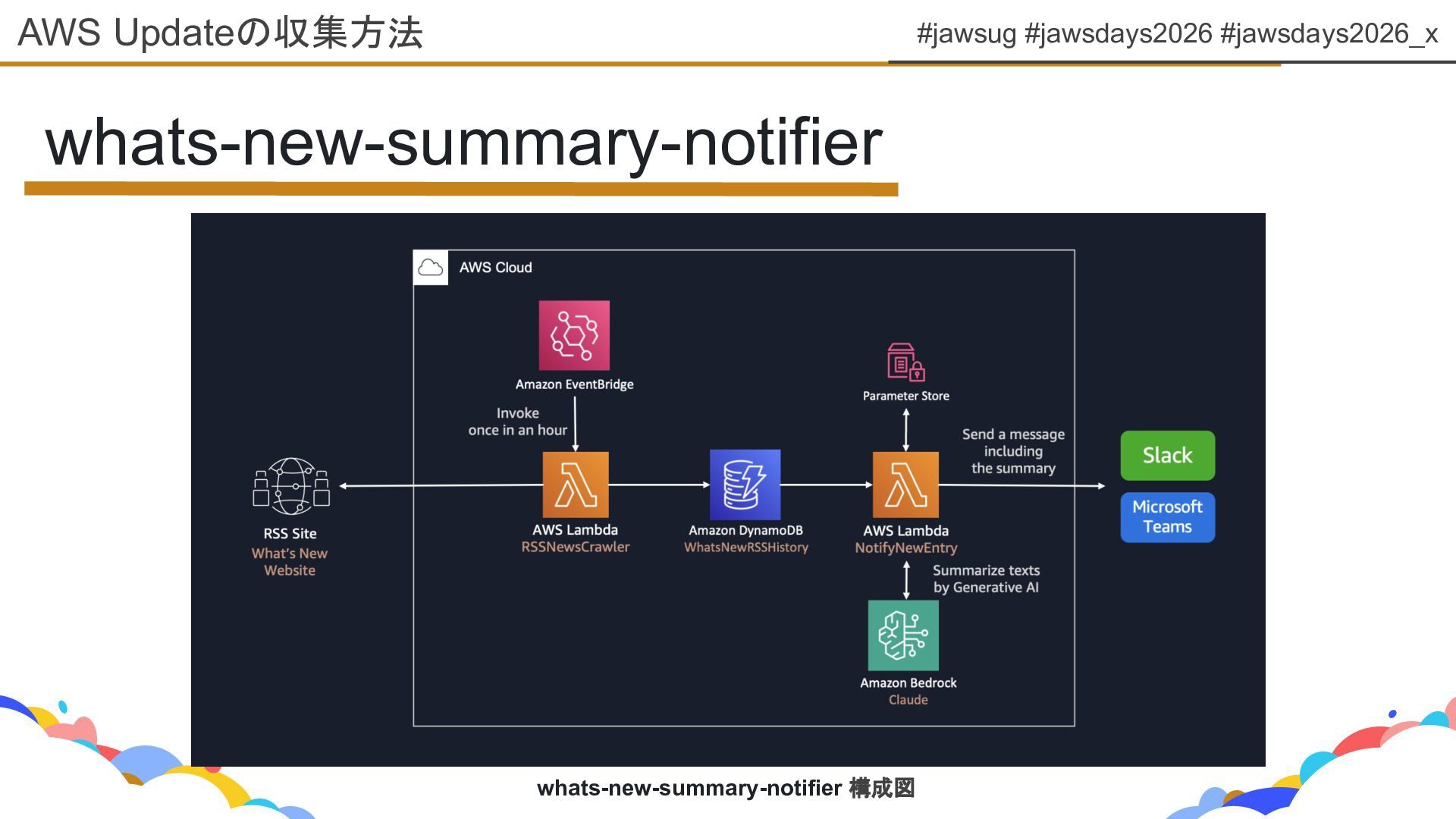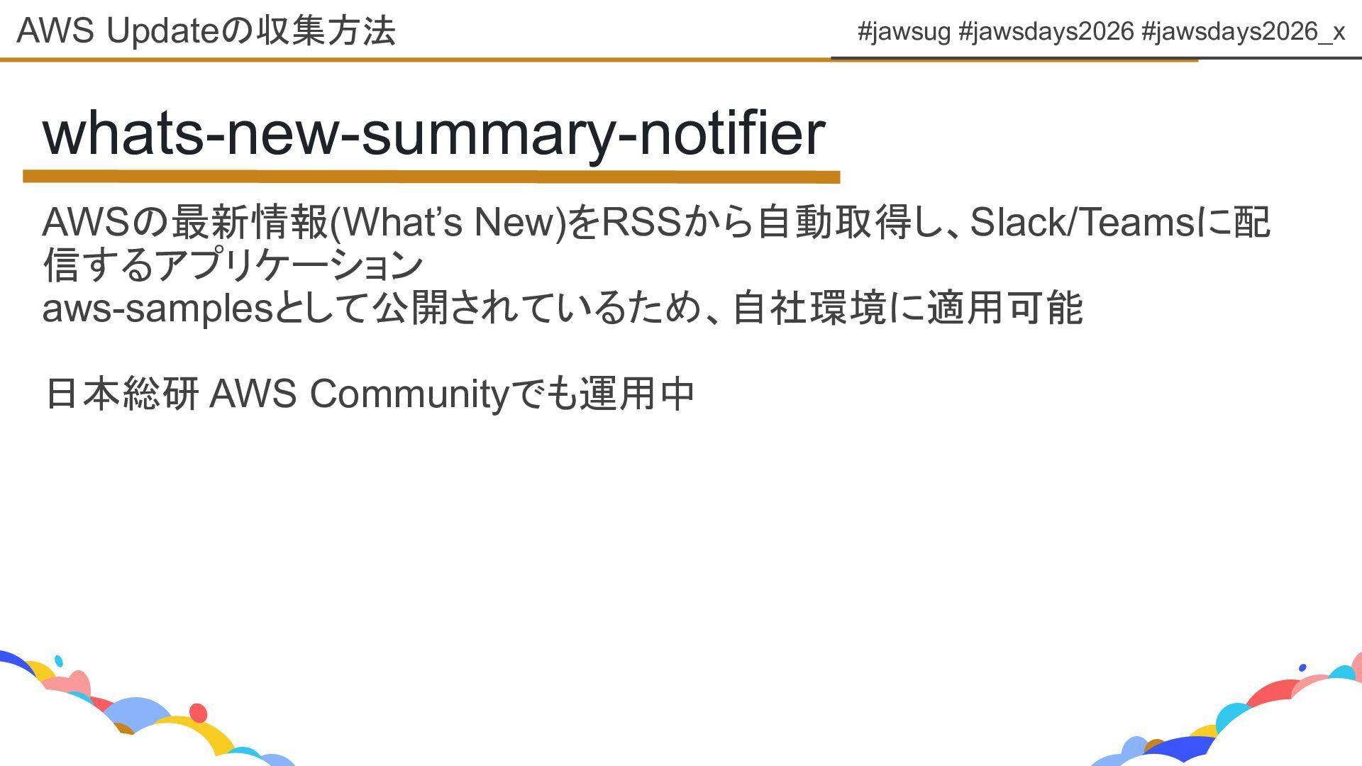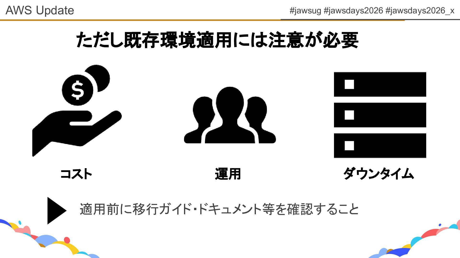 Agent • AWS Security Agent • AWS AI Factories • Amazon Aurora DSQL • Amazon S3 Vectors • Amazon S3 Tables • Oracle Database@AWS • AWS Interconnect • Amazon VPC Route Server GAまたはPreviewにて公開されたサービス 2025 AWS Update Summary • AWS Transform • Lambda Managed Instances • Amazon EVS • Amazon ECS Express Mode • Amazon Quick Suite • Amazon SageMaker Unified Studio • AWS Billing Transfer (一部抜粋)